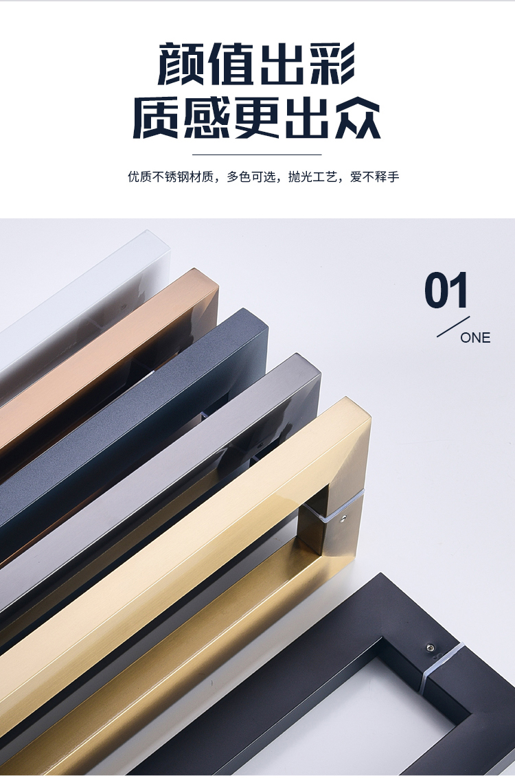 Tay nắm cửa kính mờ Tay nắm màu đen xám trắng sữa Ống vuông chải đen titan vàng hồng vàng thép không gỉ không bám vân tay
