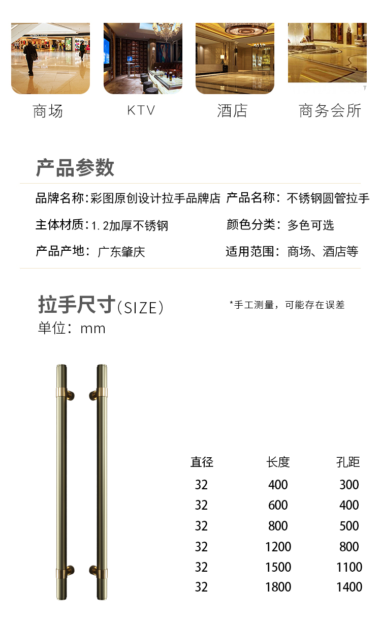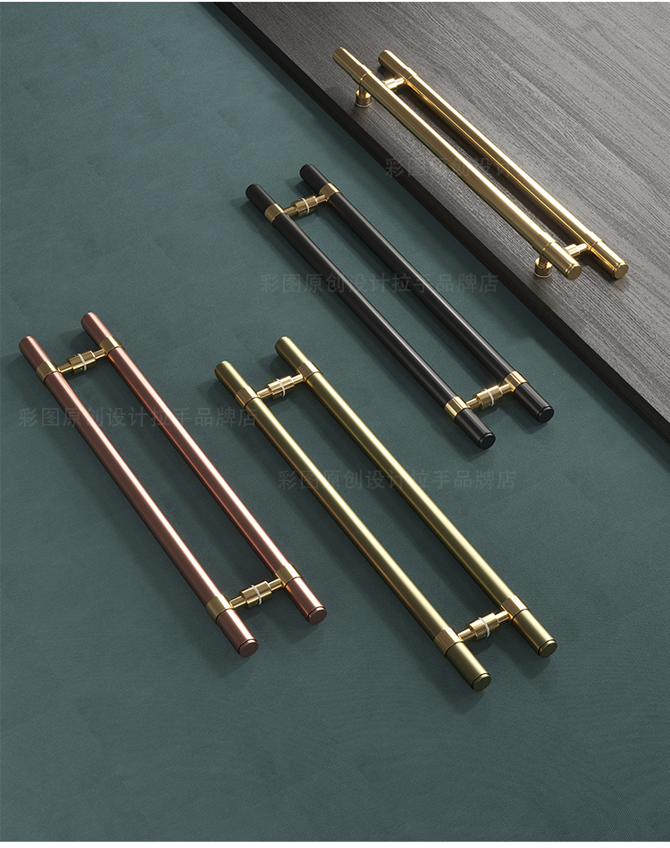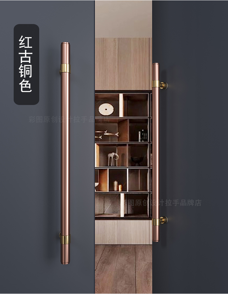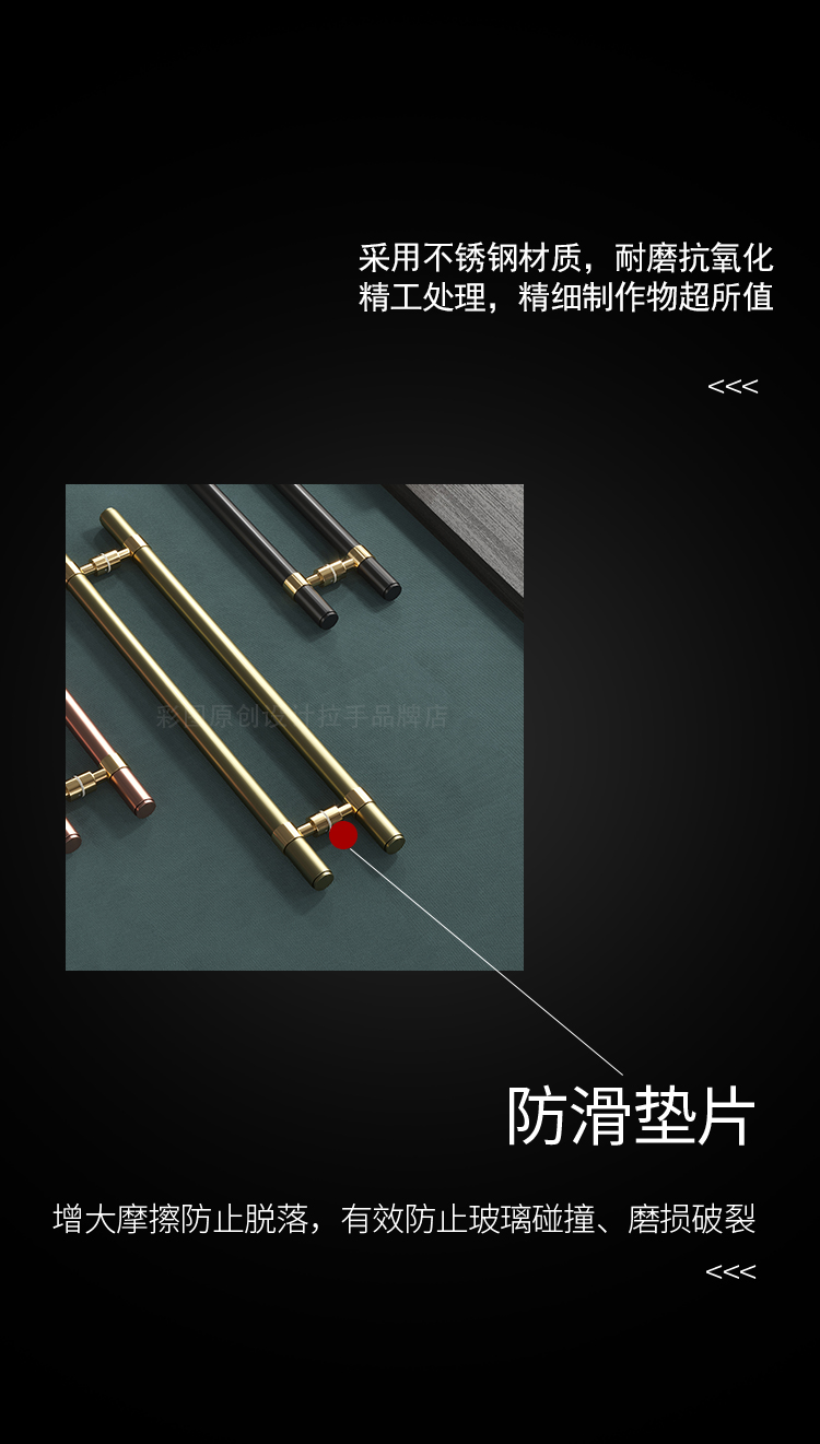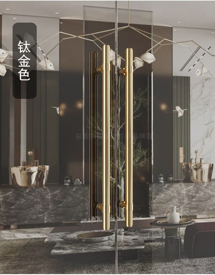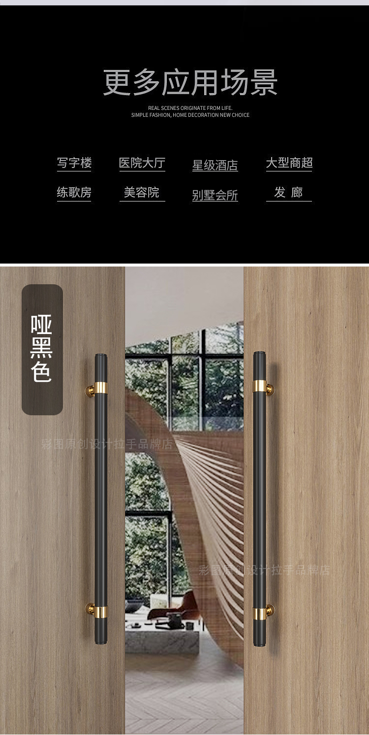 现代轻奢玻璃门拉手不锈钢对装商店铺推拉有框实木门把手黑色扶手