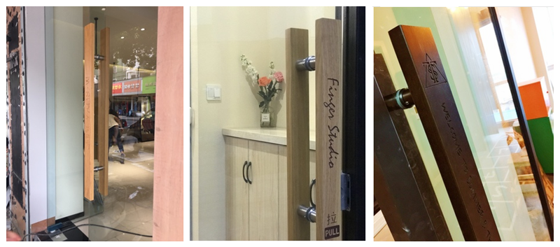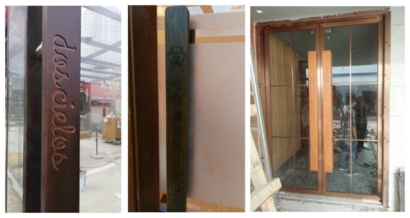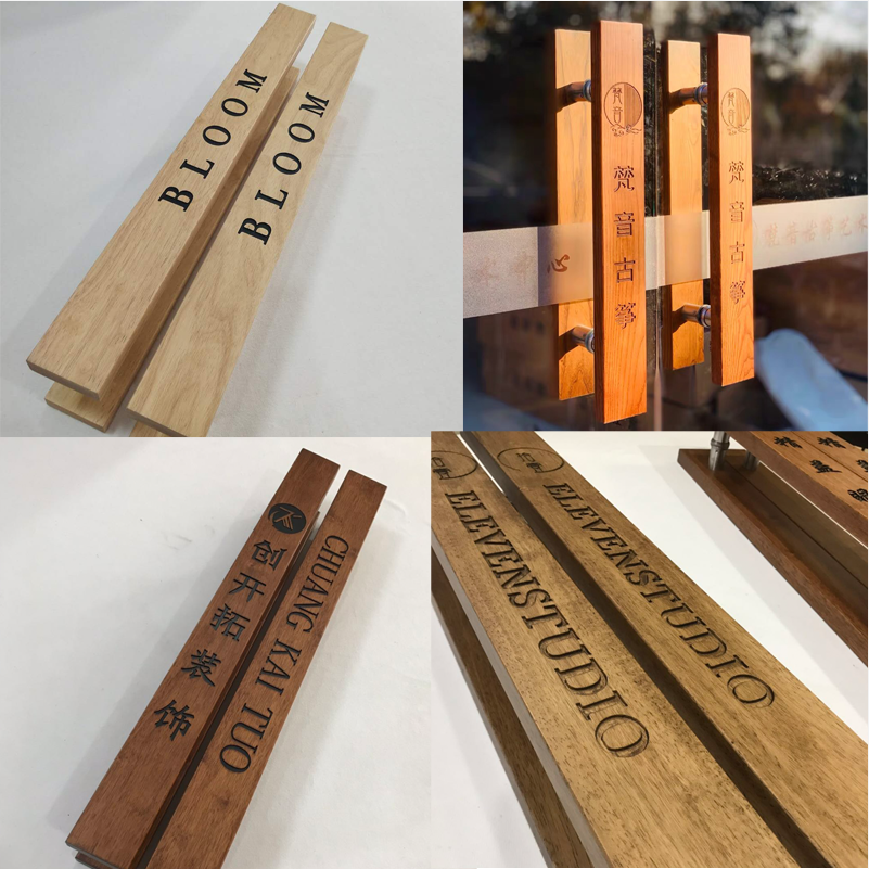 Tay nắm cửa kính tùy chỉnh làm bằng tay khúc gỗ chạm khắc gỗ rắn cửa khách sạn tay nắm cửa khách sạn LOGO làm bằng tay