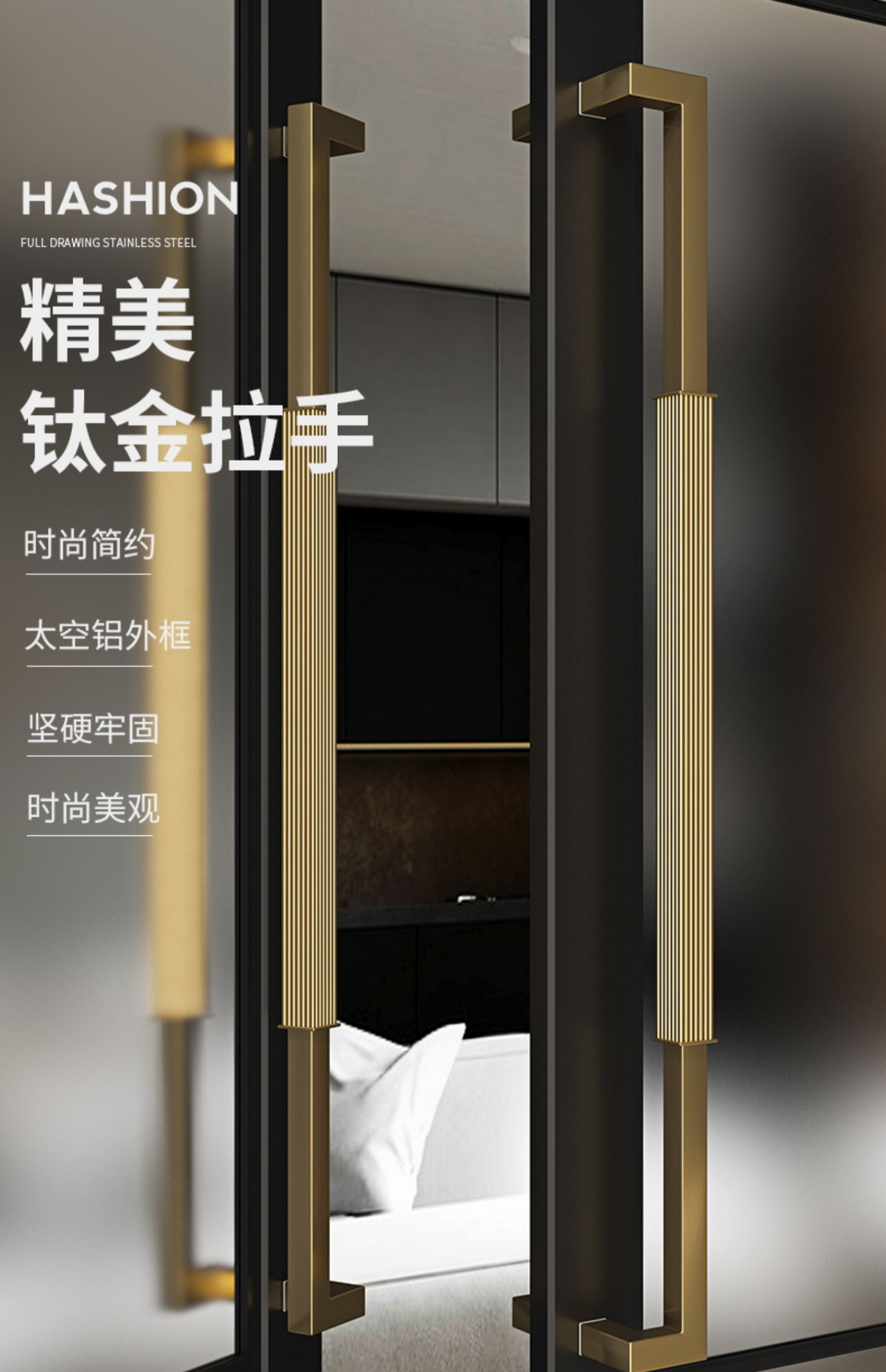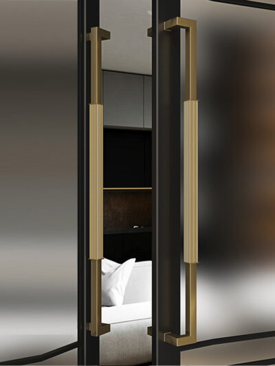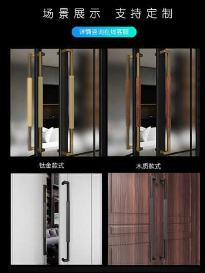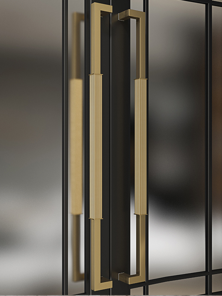 Tay nắm cửa kính vàng thép không gỉ hiện đại khung đen cửa tay nắm cửa khách sạn tay vịn gỗ lớn tay cầm lớn
