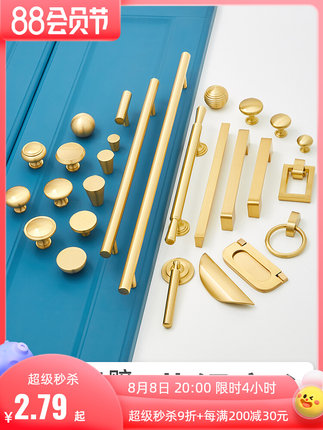 Tay nắm cửa tủ bằng đồng thau tinh khiết sang trọng cao cấp vàng cao cấp đơn giản đồ nội thất châu Âu ngăn kéo tủ đựng quần áo cửa tay nắm đồng