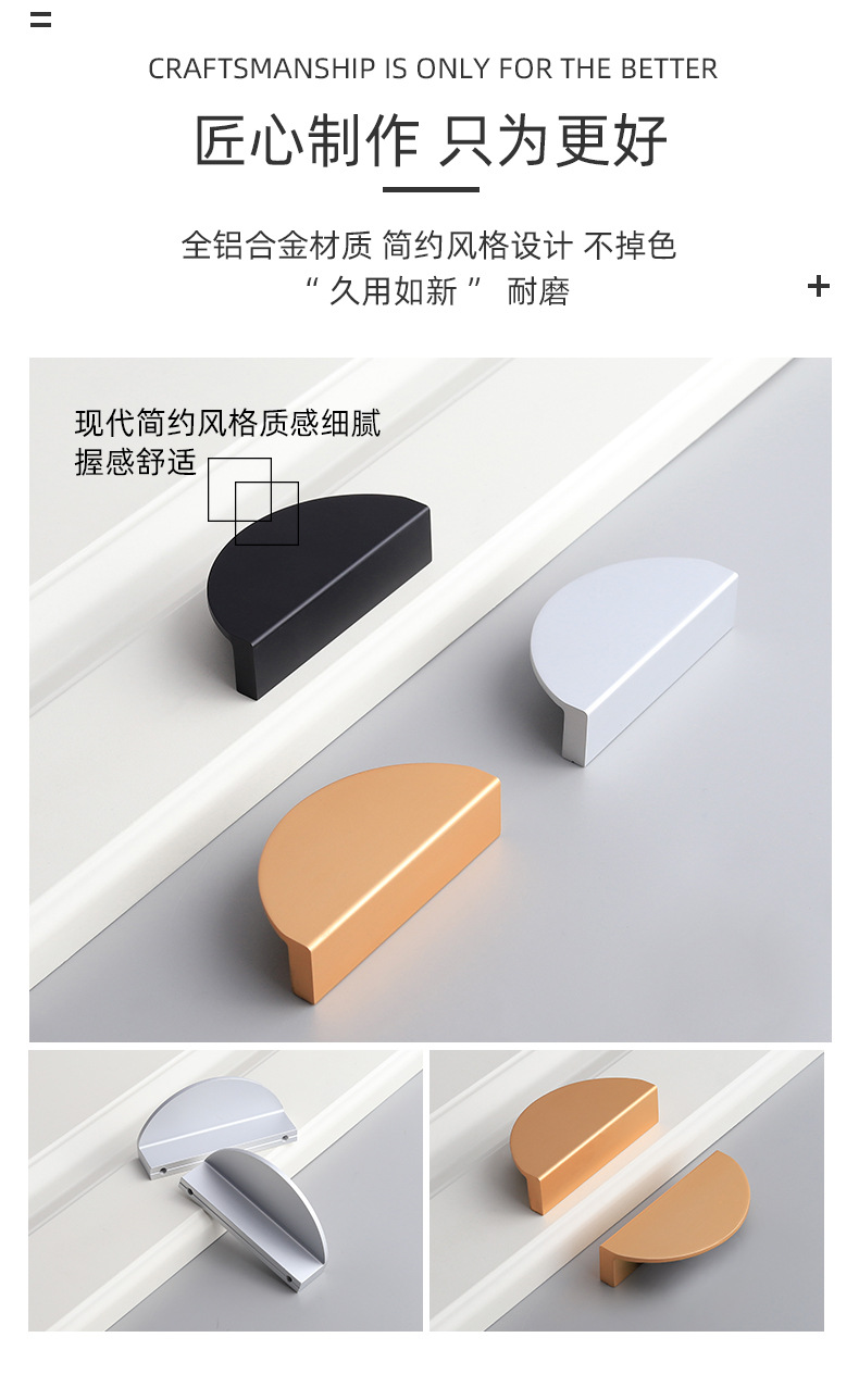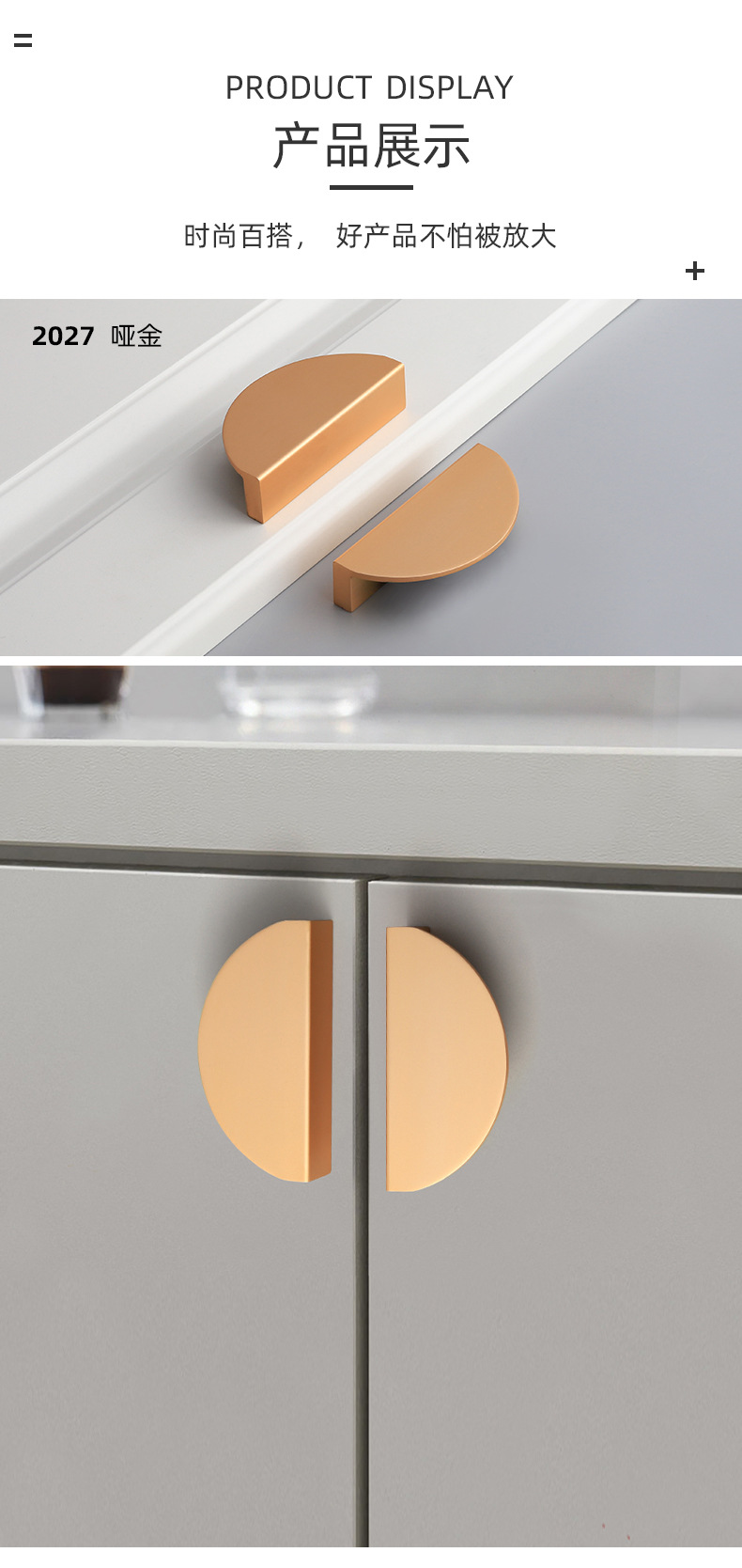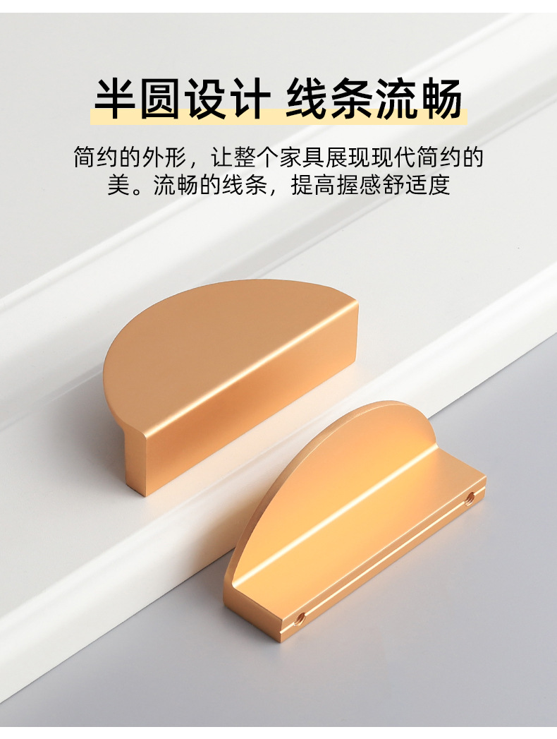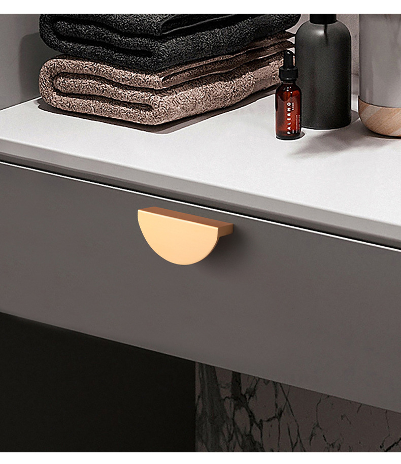 Tay nắm cửa tủ hình tròn màu vàng đẹp Bắc Âu sang trọng Tủ quần áo Tay nắm tủ hình bán nguyệt kiểu Trung Quốc mới Cặp tay nắm ngăn kéo