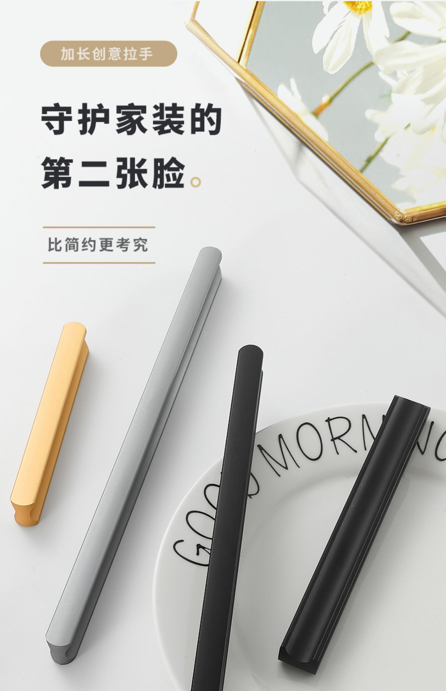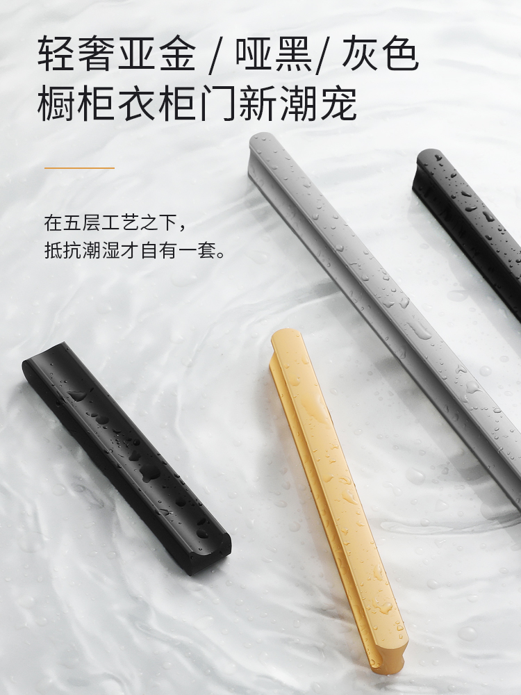 Tay nắm cửa tủ quần áo Tay nắm ngăn kéo tủ bếp sang trọng Tay nắm cửa tủ tủ đen xám hiện đại tối giản Tay nắm màu vàng. Tay nắm cửa nhập khẩu