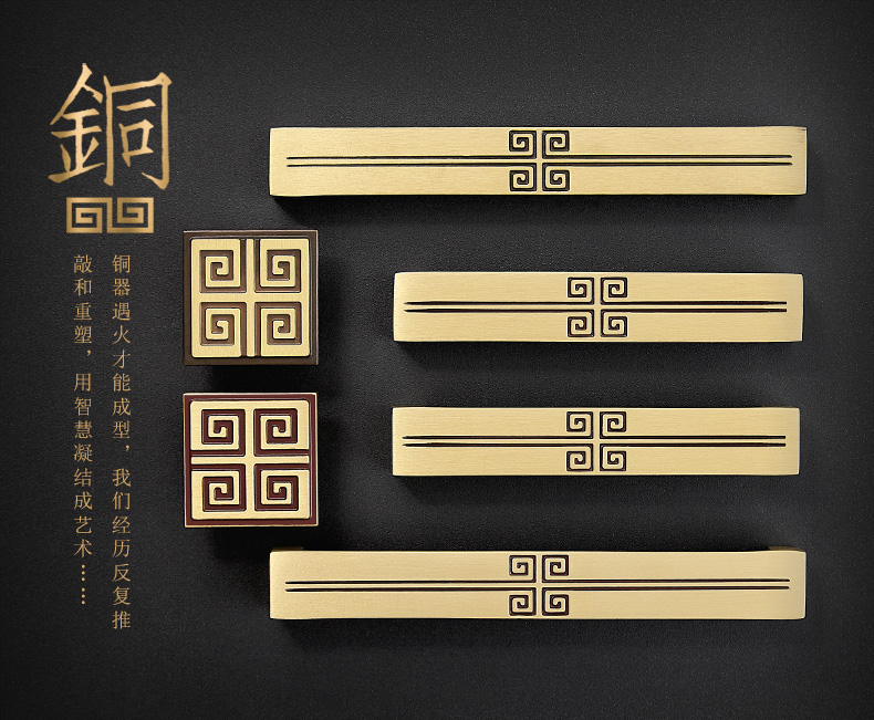 Tay nắm đồng cổ điển ánh sáng sang trọng rắn màu vàng tinh khiết phần cứng đồng mục vụ mới tủ quần áo Trung Quốc cửa tủ ngăn kéo tay nắm