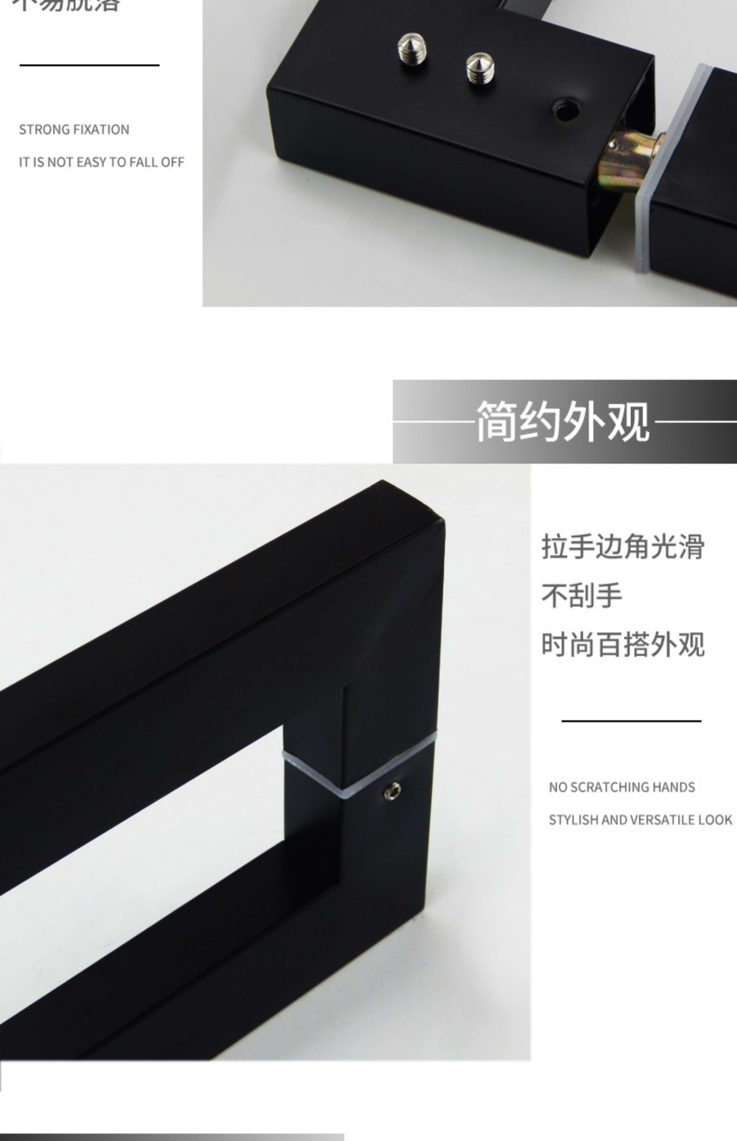 Tay nắm ống vuông bằng thép không gỉ dày phụ kiện cửa kính văn phòng tay nắm cửa màu đen tay vịn cửa hàng
