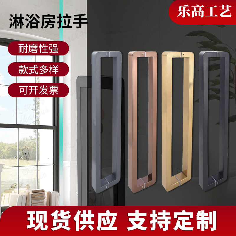 Tay nắm phòng tắm Tay nắm cửa kính inox phòng tắm Tay nắm cửa trượt cửa trượt chữ L hình chữ O ống vuông tay cầm màu đen