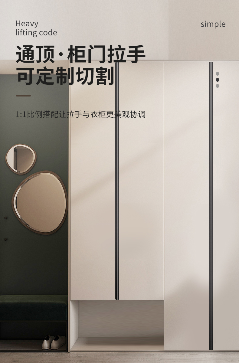 Tay nắm vô hình dài màu đen tối giản tối giản ngăn kéo tối giản không có lỗ ngăn tủ cánh cửa tủ tủ quần áo ánh sáng vàng sang trọng cạnh niêm phong tay nắm cửa