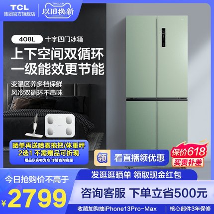 TCL 408 lít bốn cửa siêu mỏng tần số biến thiên tiết kiệm năng lượng hạng nhất được nhúng vào tủ lạnh gia dụng thông minh thiết bị lớn