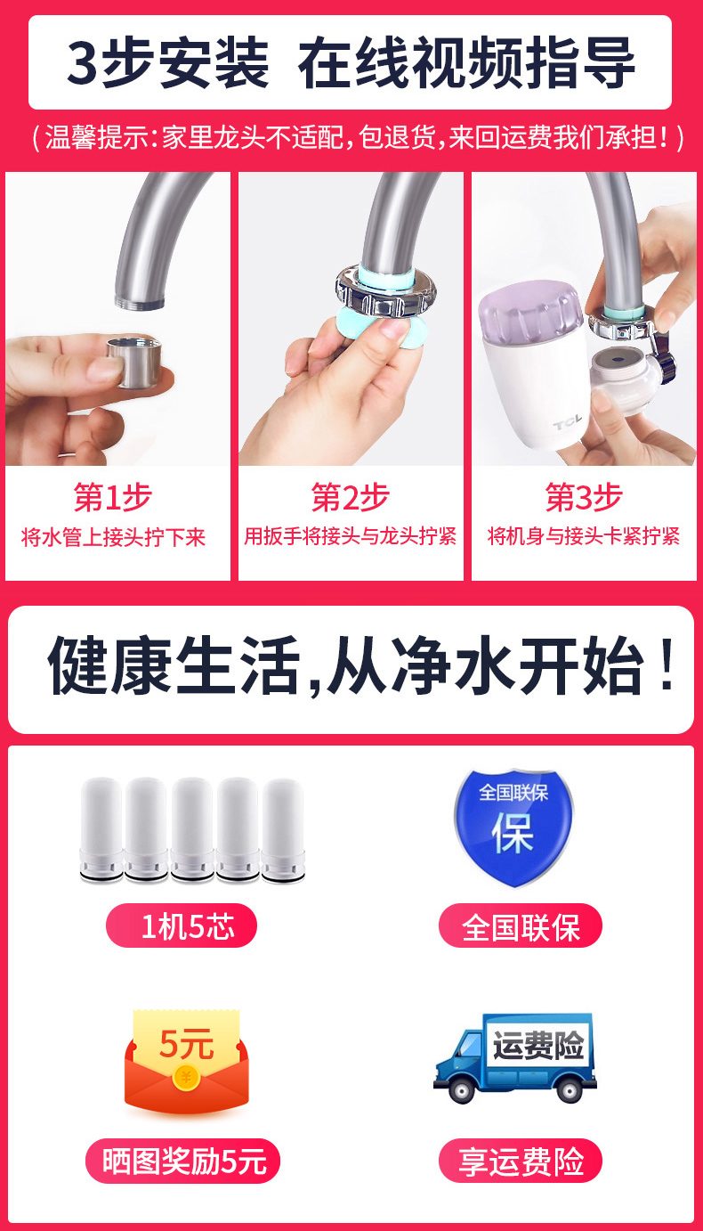 TCL máy lọc nước nhà bếp gia đình vòi lọc nước máy lọc nước uống trực tiếp máy lọc nước máy lọc nước