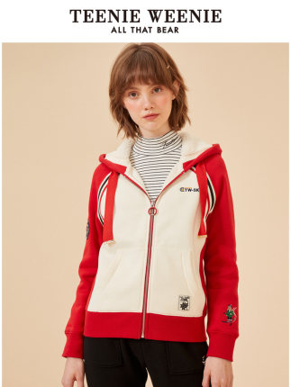 TeenieWeenie gấu 2019 mùa đông mới của phụ nữ dây kéo trùm đầu áo len giản dị áo khoác ngắn màu chặn