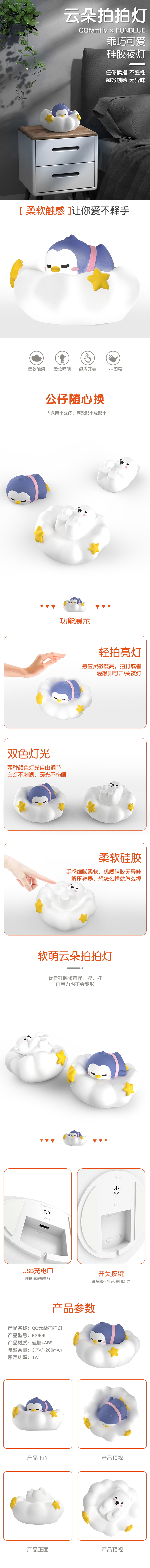 Tencent đèn ngủ đám mây QQJOY silicone pat ánh sáng trong cô gái ngủ phòng ngủ đèn bàn đầu giường món quà sinh nhật