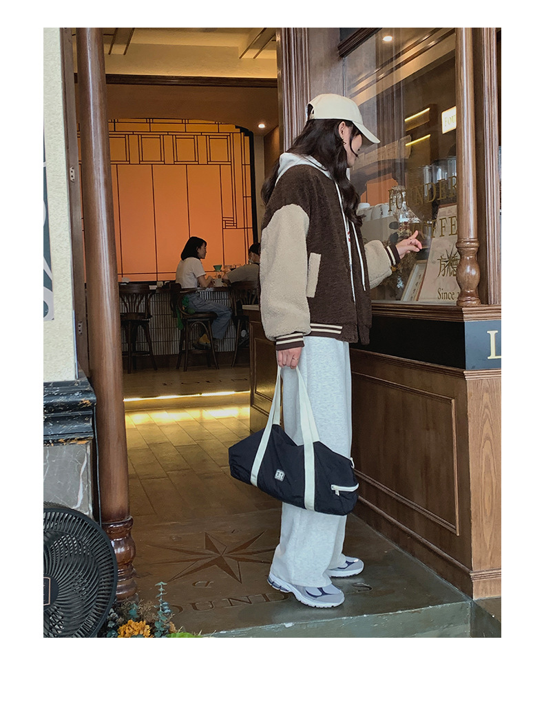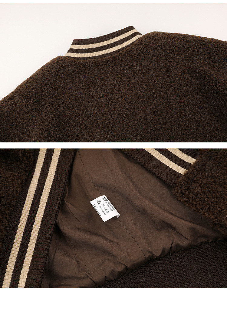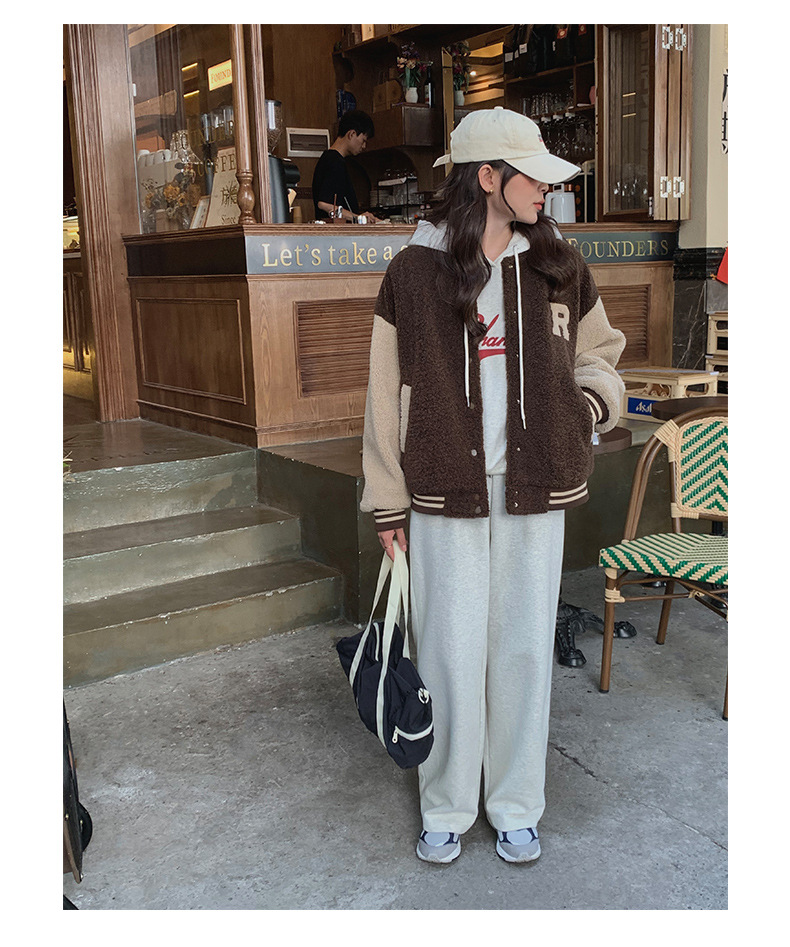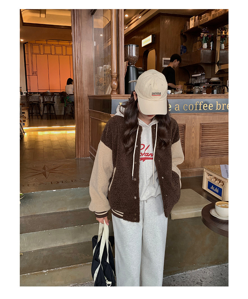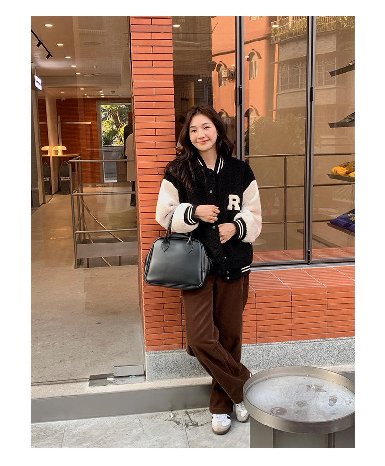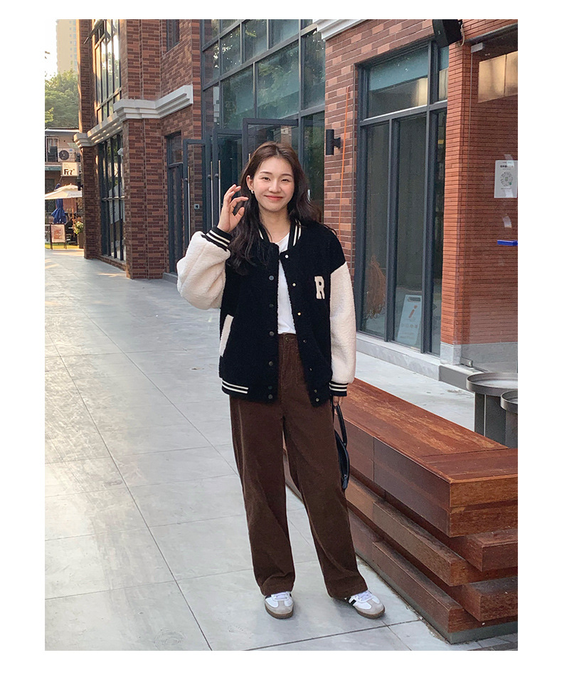 TG Cổ Điển Màu Sắc Tương Phản Retro Len Cừu Đồng Phục Bóng Chày Nữ Mùa Đông 2022 Mới Rời Chữ Áo Khoác Dày 18356