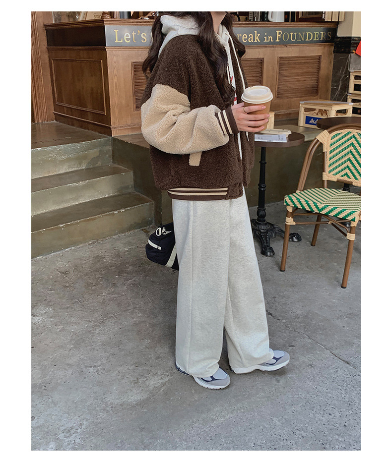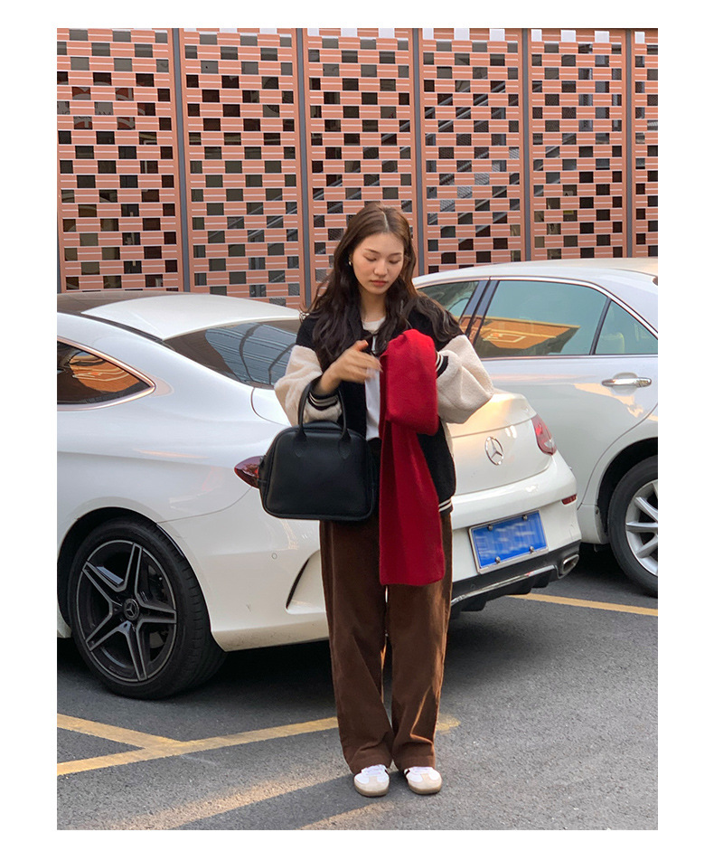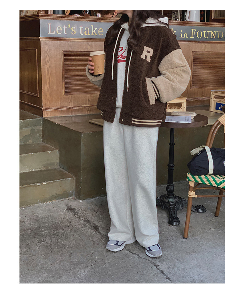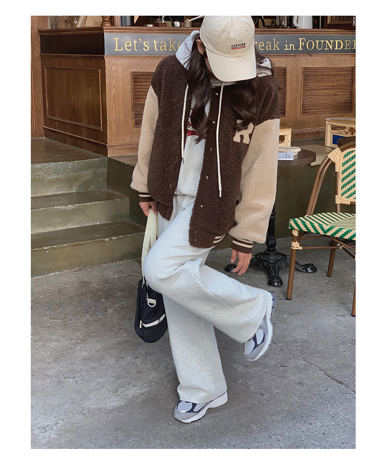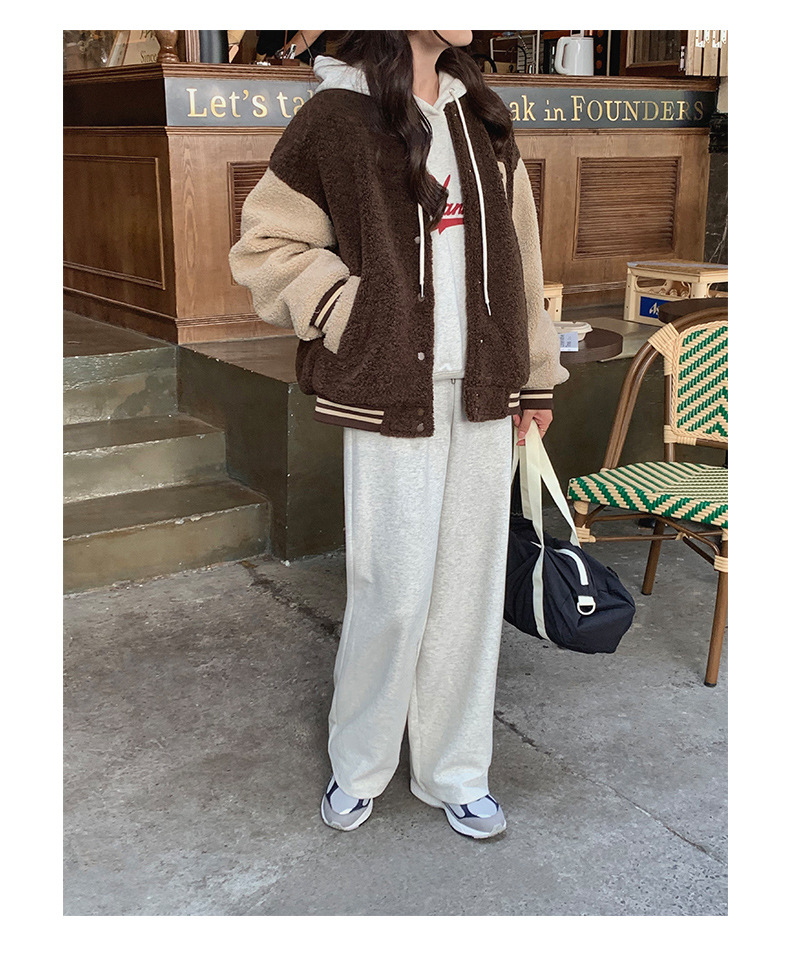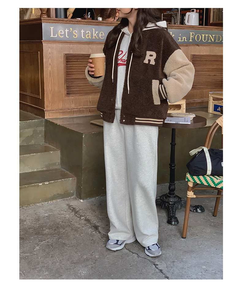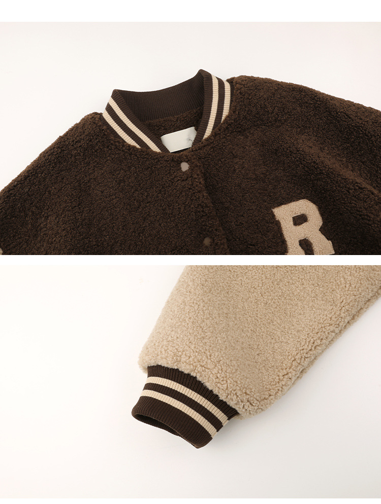TG Cổ Điển Màu Sắc Tương Phản Retro Len Cừu Đồng Phục Bóng Chày Nữ Mùa Đông 2022 Mới Rời Chữ Áo Khoác Dày 18356