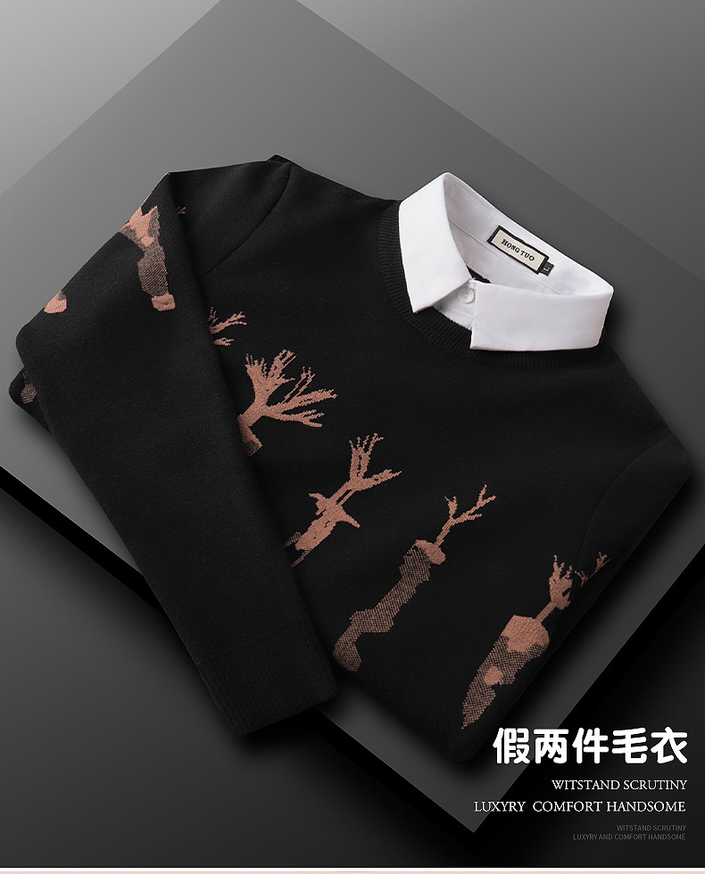 TGUO cổ áo sơ mi giả áo len hai mảnh nam dày mới cộng với nhung hai mảnh phù hợp với mùa thu và mùa đông với cổ áo giả dệt kim đáy áo sơ mi