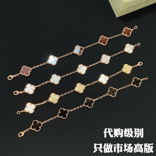| 四叶草手链高版本网红贝壳玛瑙镶钻满钻四叶草手链五花手环双面 |