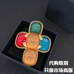 | 欧美中古胸针树脂胸花复古饰品树脂胸饰Vintage黄铜镀金字母衣饰 |