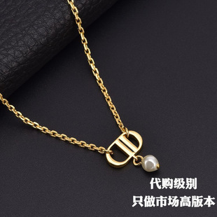 | 高版本D家字母珍珠项链欧美CD字母锁骨链珍珠吊坠秋冬毛衣大衣链 |