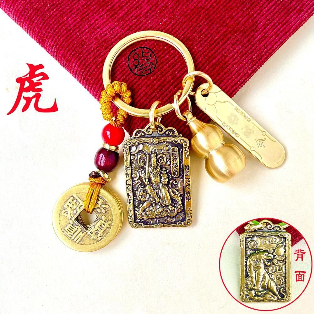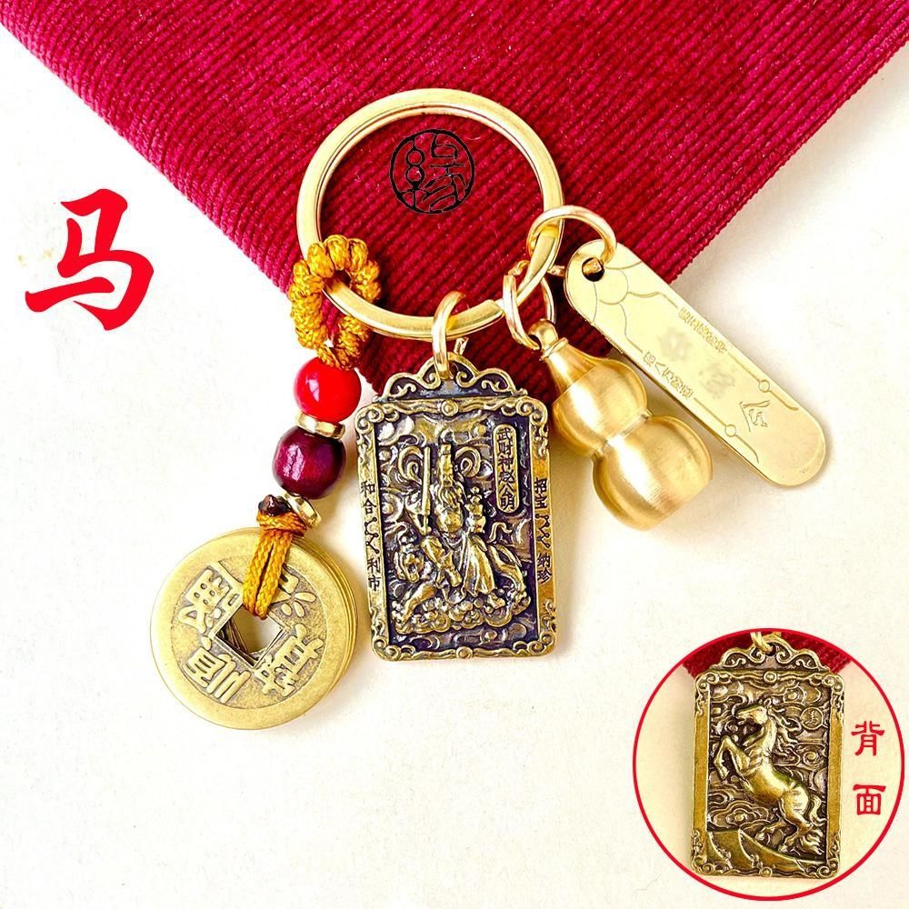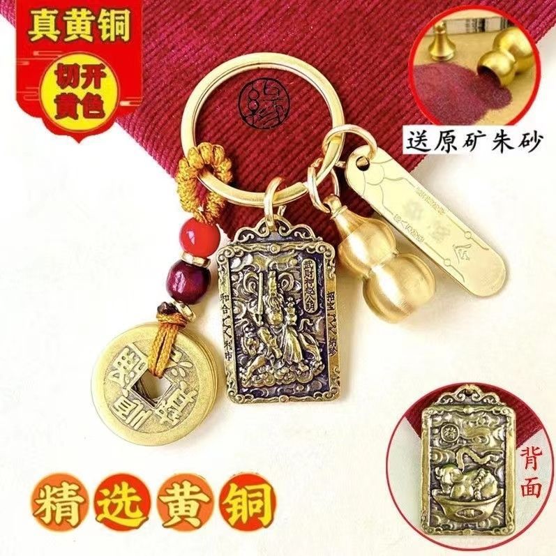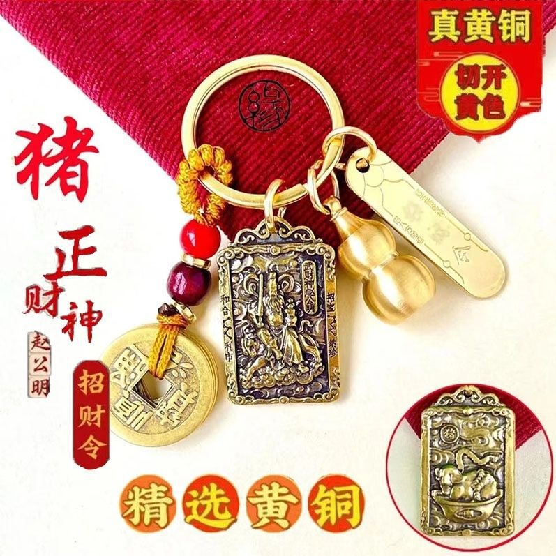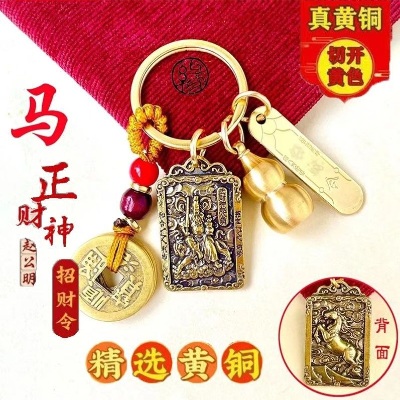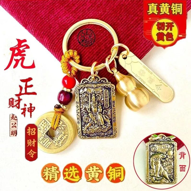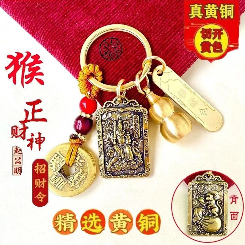 Thần Tài Triệu Công Minh Mặt Dây Chuyền Chìa Khóa Bằng Đồng Tuyển Dụng Cơm Bầu Mười Hai Cung Hoàng Đạo Móc Khóa Ngũ Hoàng Tiền Quà Tặng Trang Sức