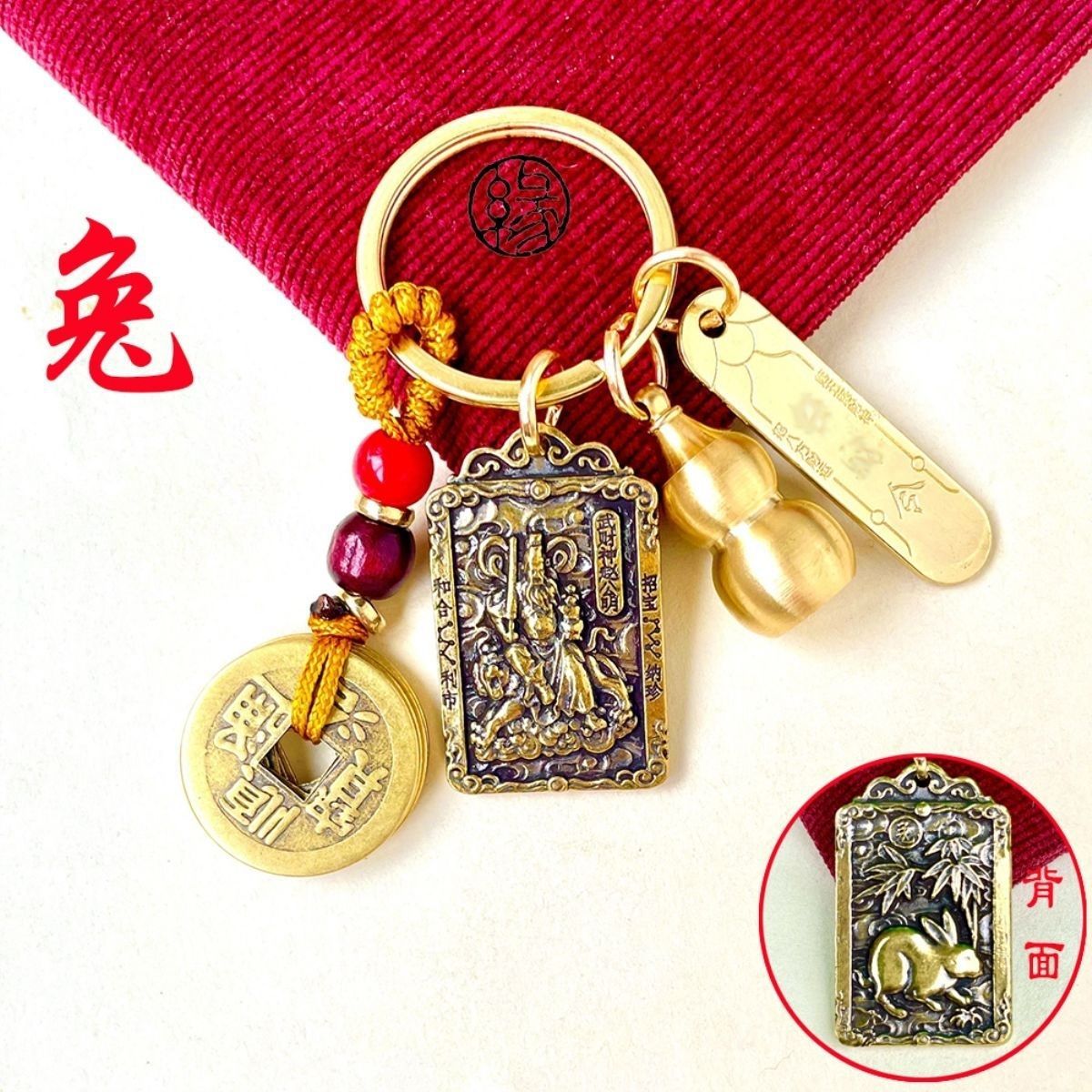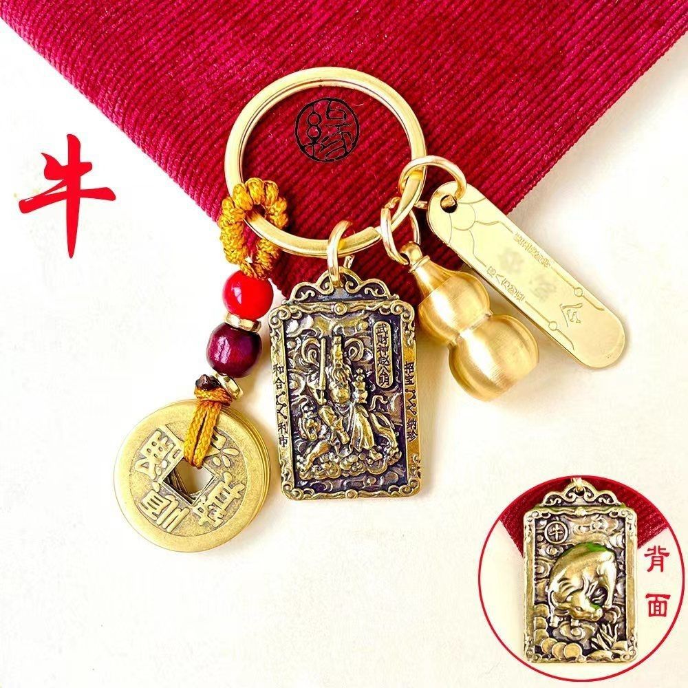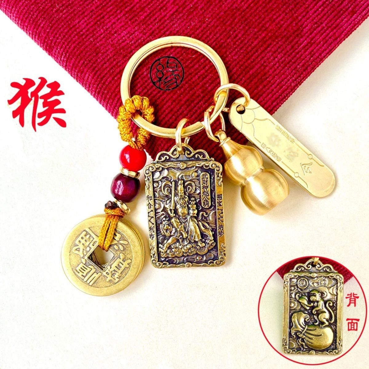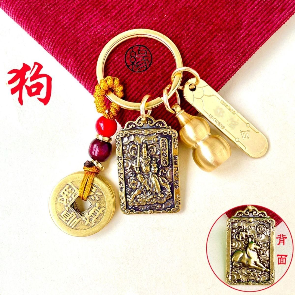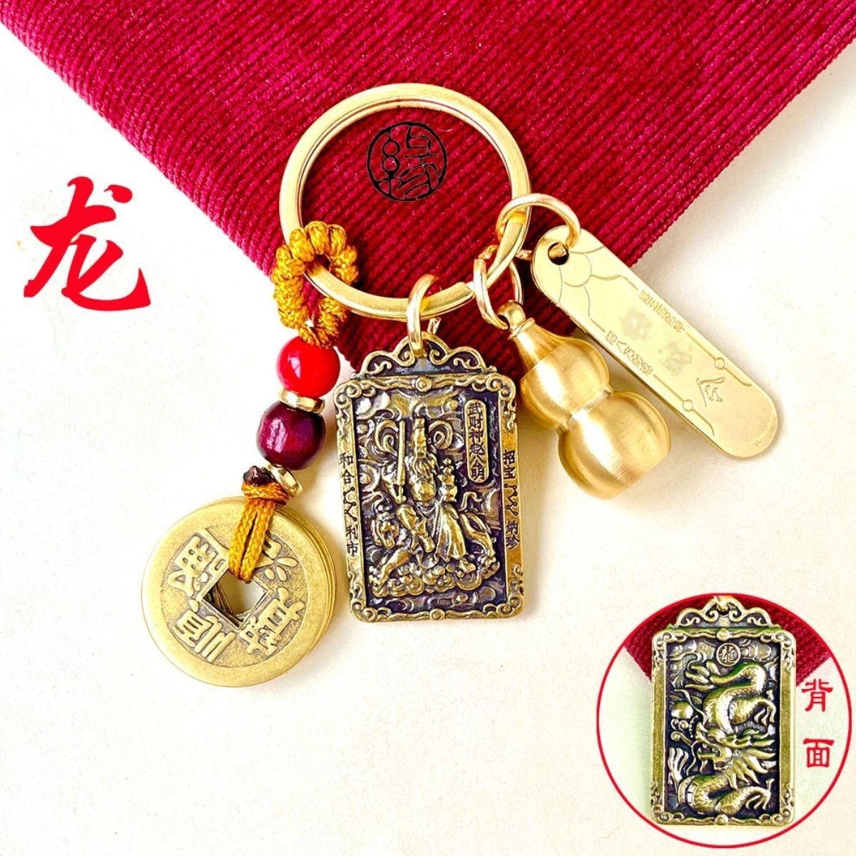 Thần Tài Triệu Công Minh Mặt Dây Chuyền Chìa Khóa Bằng Đồng Tuyển Dụng Cơm Bầu Mười Hai Cung Hoàng Đạo Móc Khóa Ngũ Hoàng Tiền Quà Tặng Trang Sức