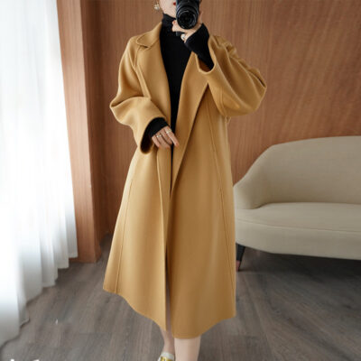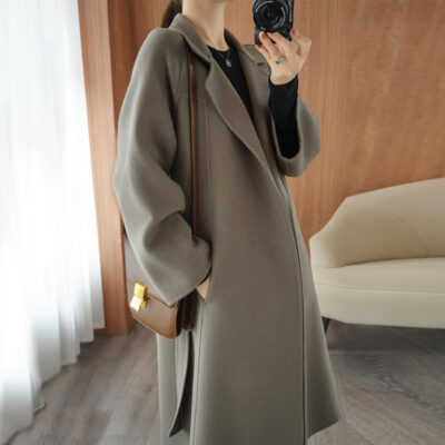 Thân trên siêu hâm mộ trẻ em áo khoác cashmere thu đông xẻ hai bên khí chất áo khoác len hai mặt áo khoác len nữ