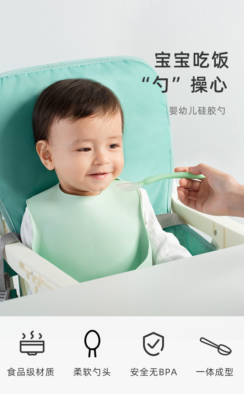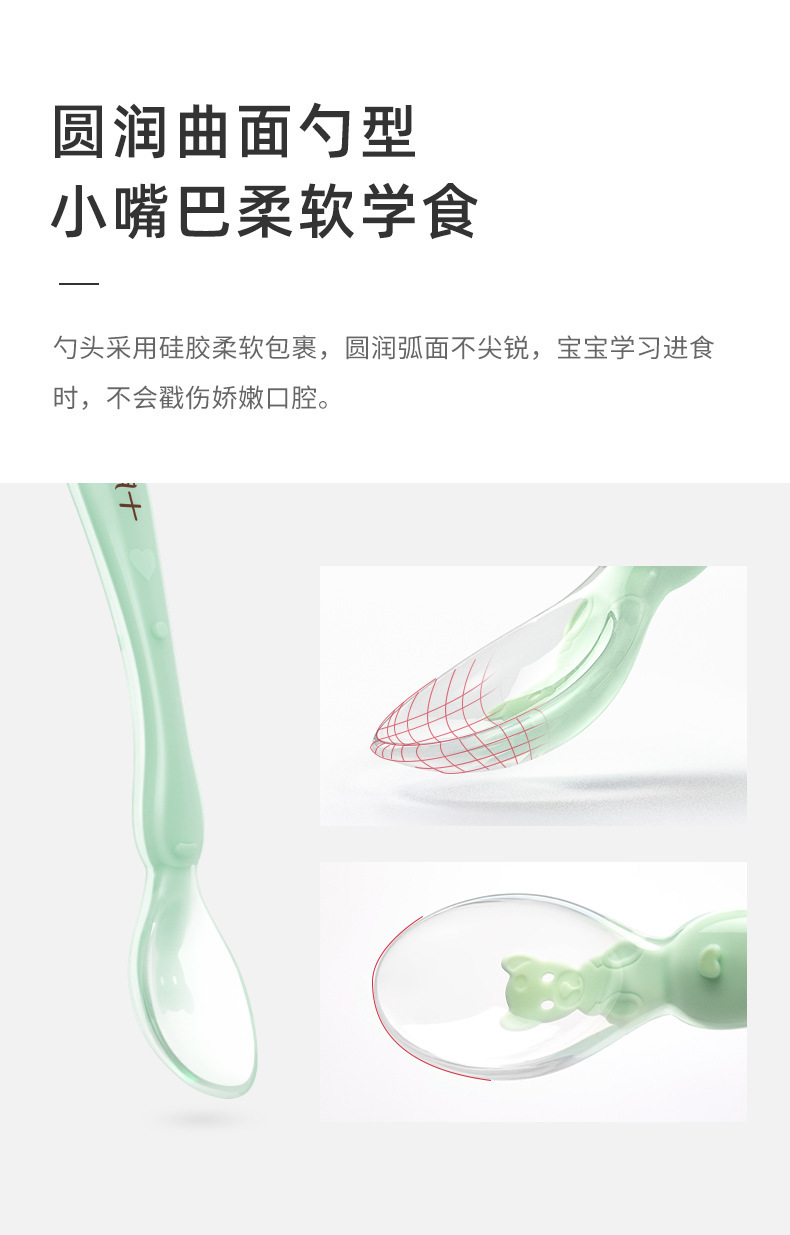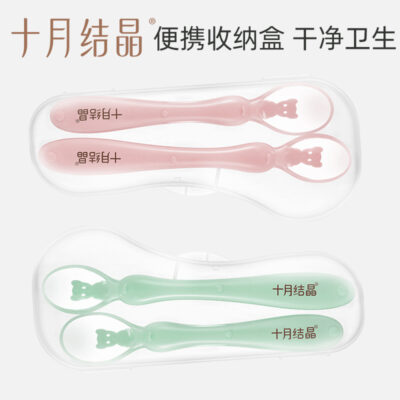 Tháng 10 kết tinh cho bé thìa mềm trẻ em thức ăn bổ sung đầu mềm bộ đồ ăn thìa ăn dặm silicone cho bé