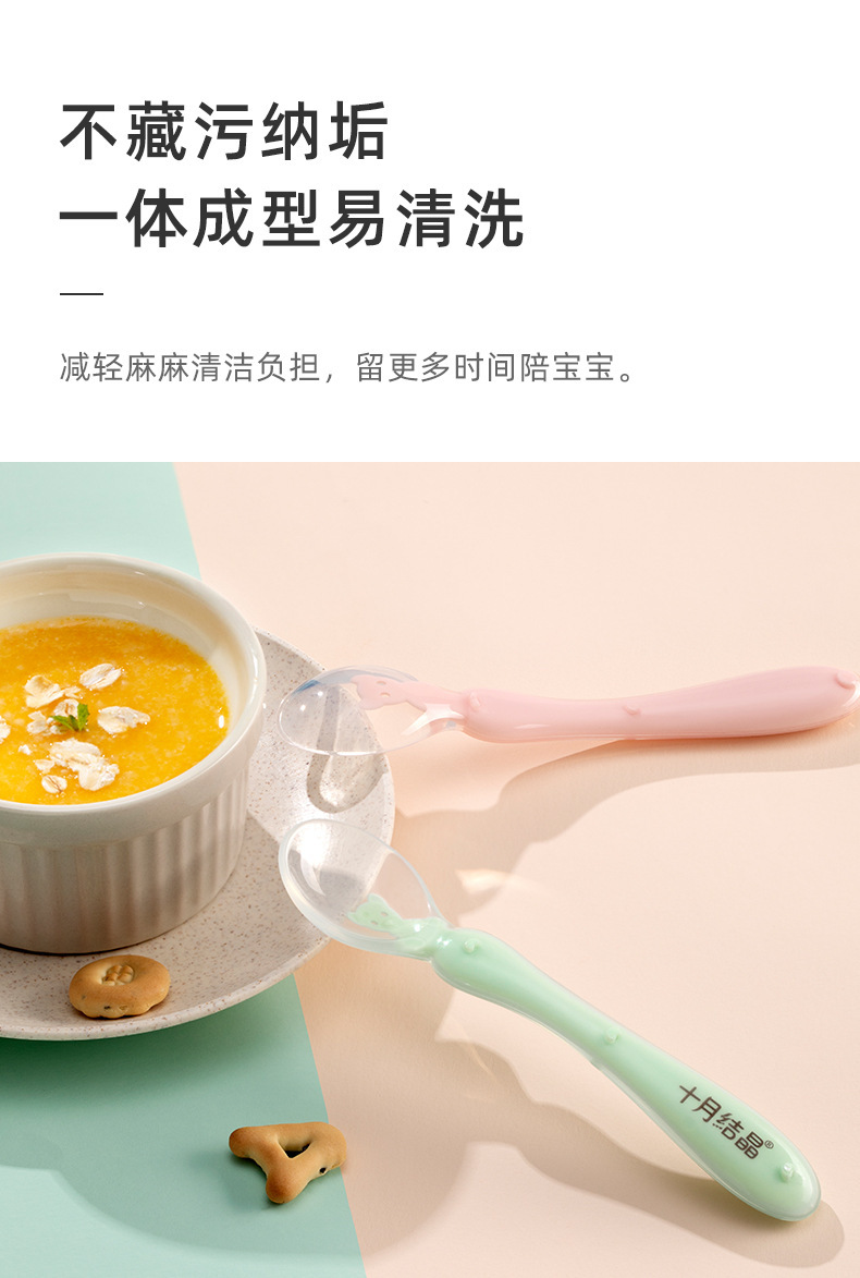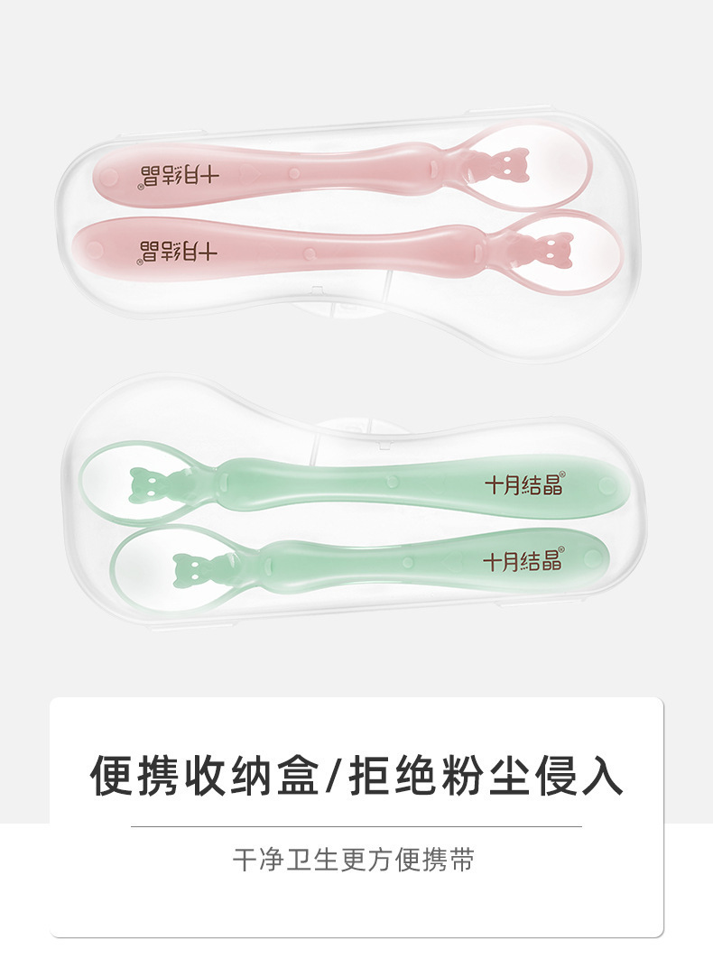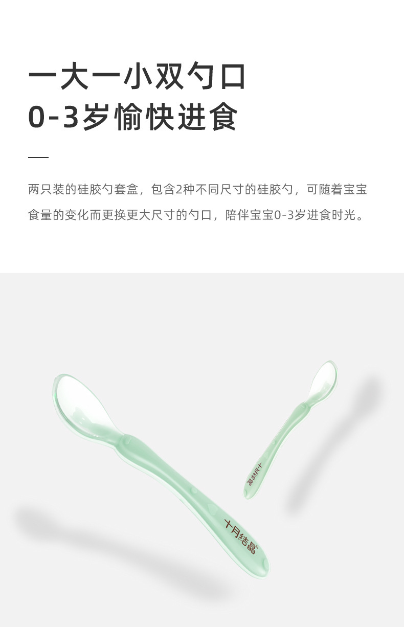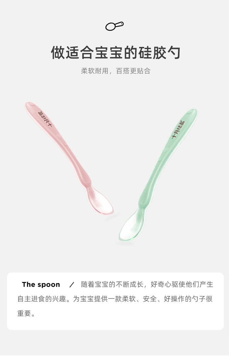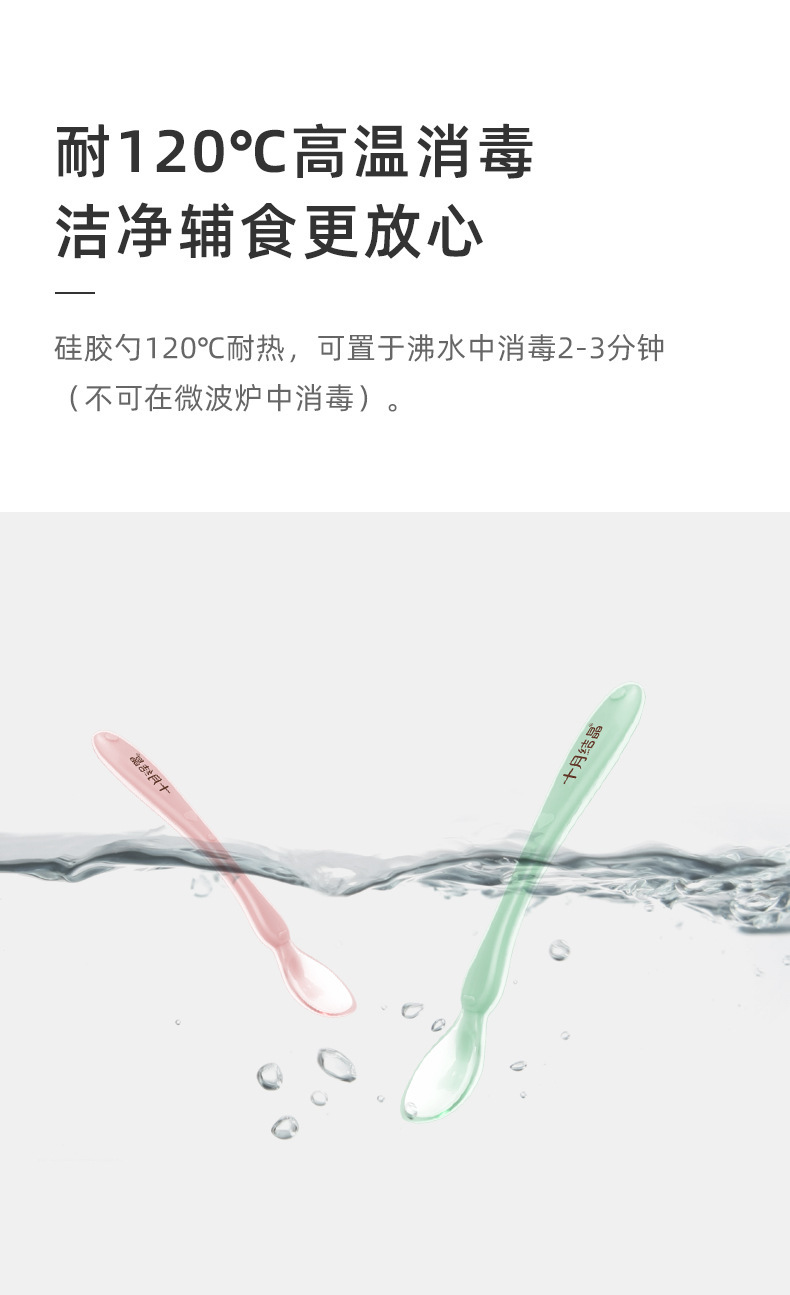 Tháng 10 kết tinh cho bé thìa mềm trẻ em thức ăn bổ sung đầu mềm bộ đồ ăn thìa ăn dặm silicone cho bé