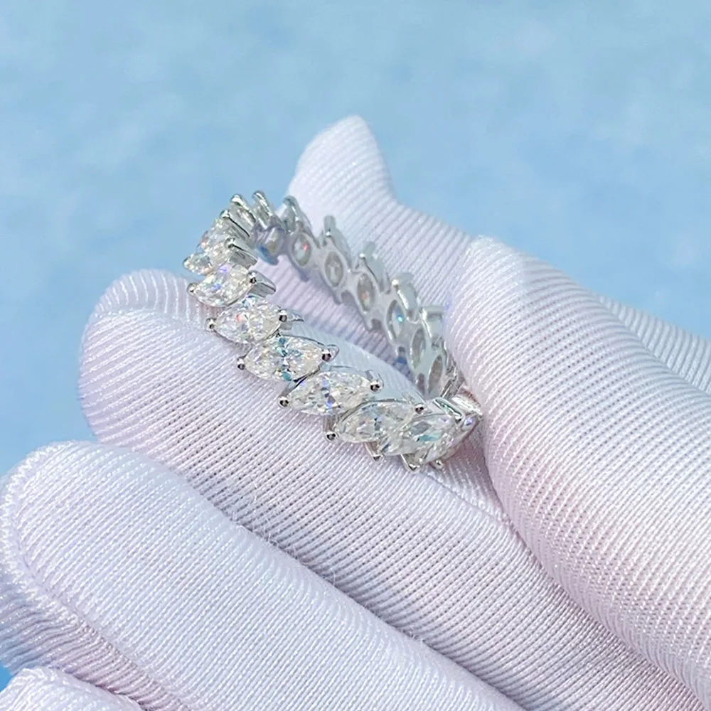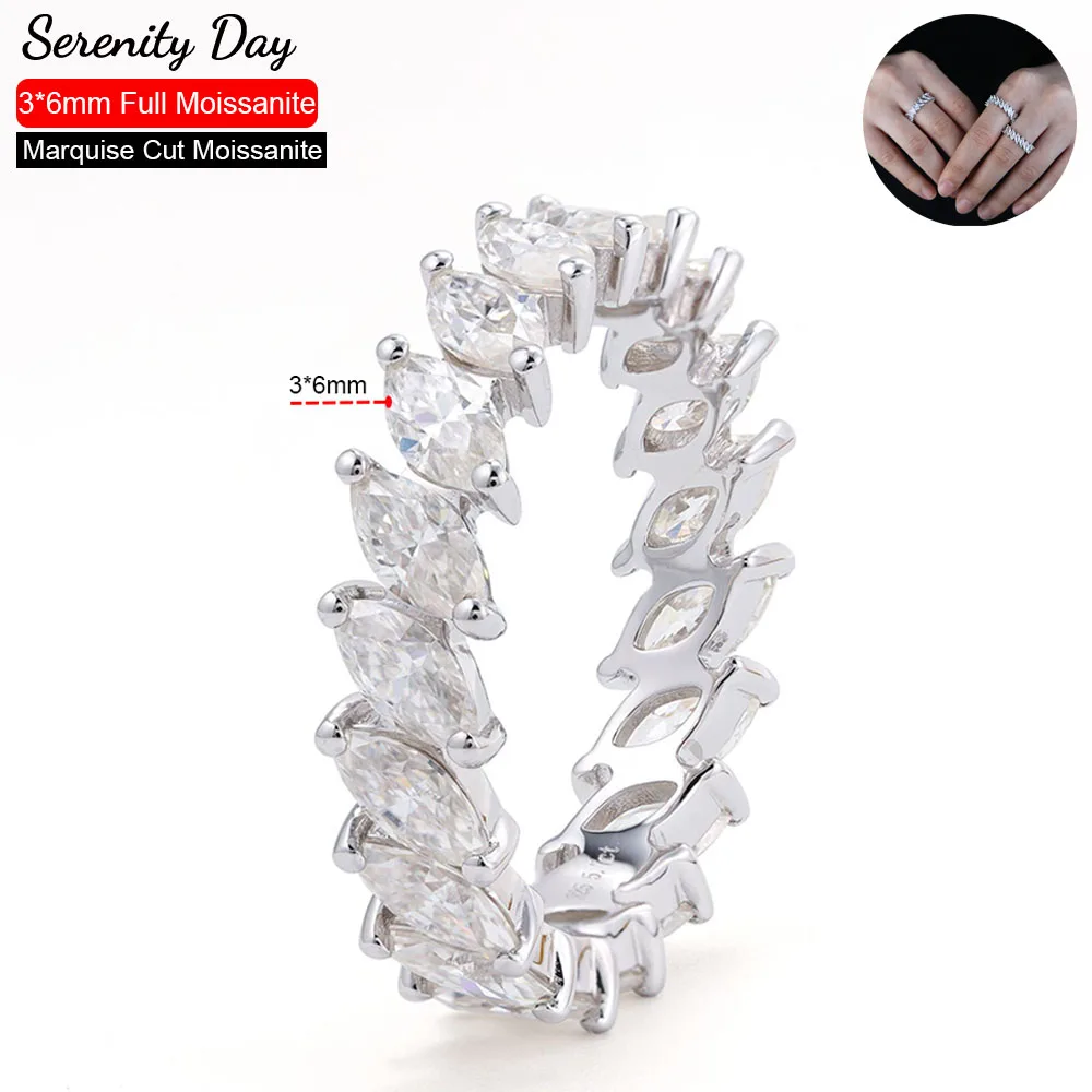 Serenity Day Real D Color 3*6mm Marquise Cutting Full Moissanite Wedding Rings For Women Gift S925 Sterling Silver Fine Jewelry