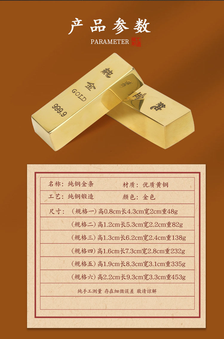 Thanh vàng giả đồ trang trí bằng đồng gạch rắn đạo cụ thị trấn cai trị giống hệt nhau bán buôn nhà máy trạm độc lập đại lý bán hàng trực tiếp