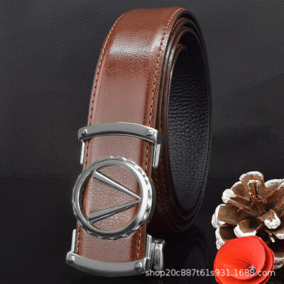 Thắt Lưng Chữ Nam Da Thật Khóa Trơn Không Răng Không Khe Cắm Thẻ Thắt Lưng Phong Cách Hàn Quốc Thời Trang Thắt Lưng Quần Rung Nổ