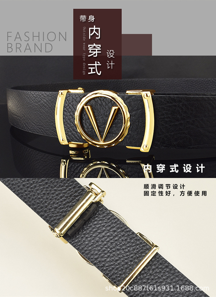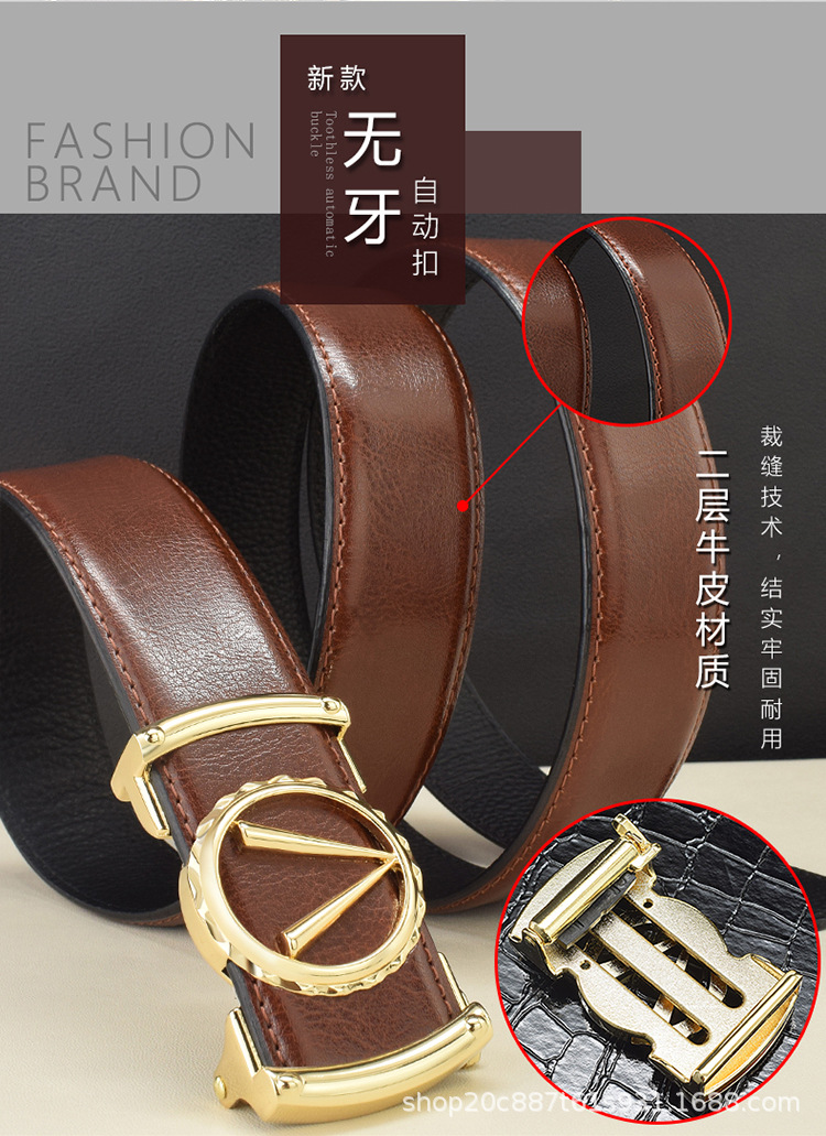 Thắt Lưng Chữ Nam Da Thật Khóa Trơn Không Răng Không Khe Cắm Thẻ Thắt Lưng Phong Cách Hàn Quốc Thời Trang Thắt Lưng Quần Rung Nổ