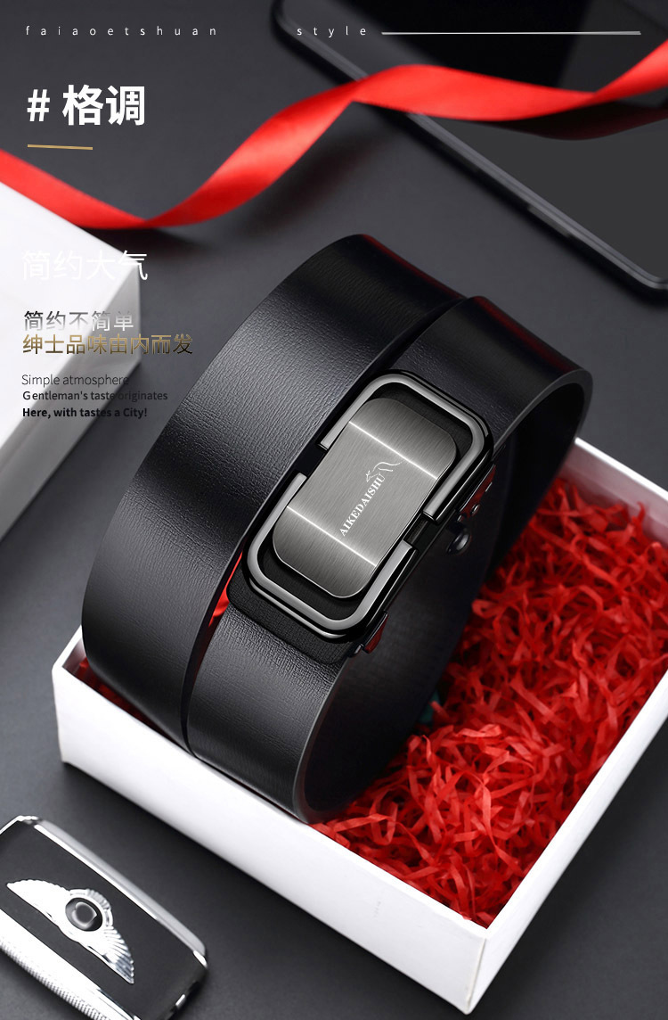 Thắt lưng da nam khóa tự động dành cho giới trẻ Thắt lưng da bò công sở bình thường dành cho nam giới và trung niên Quần dài hợp mốt cho nam