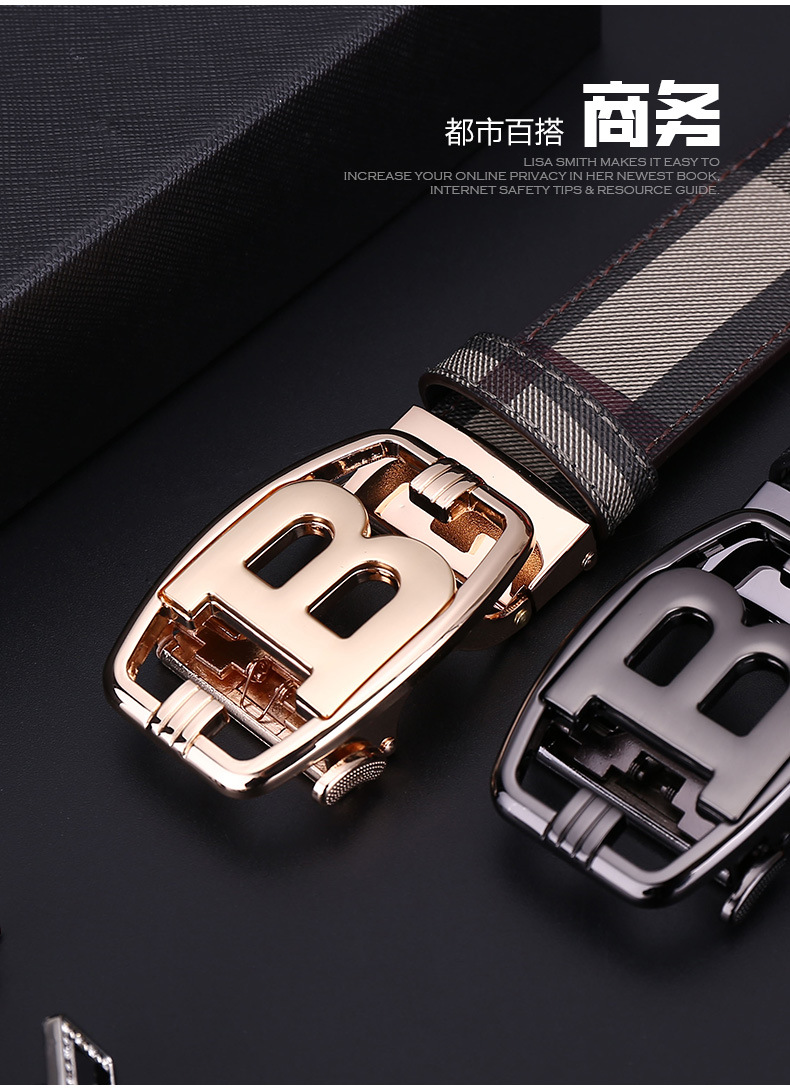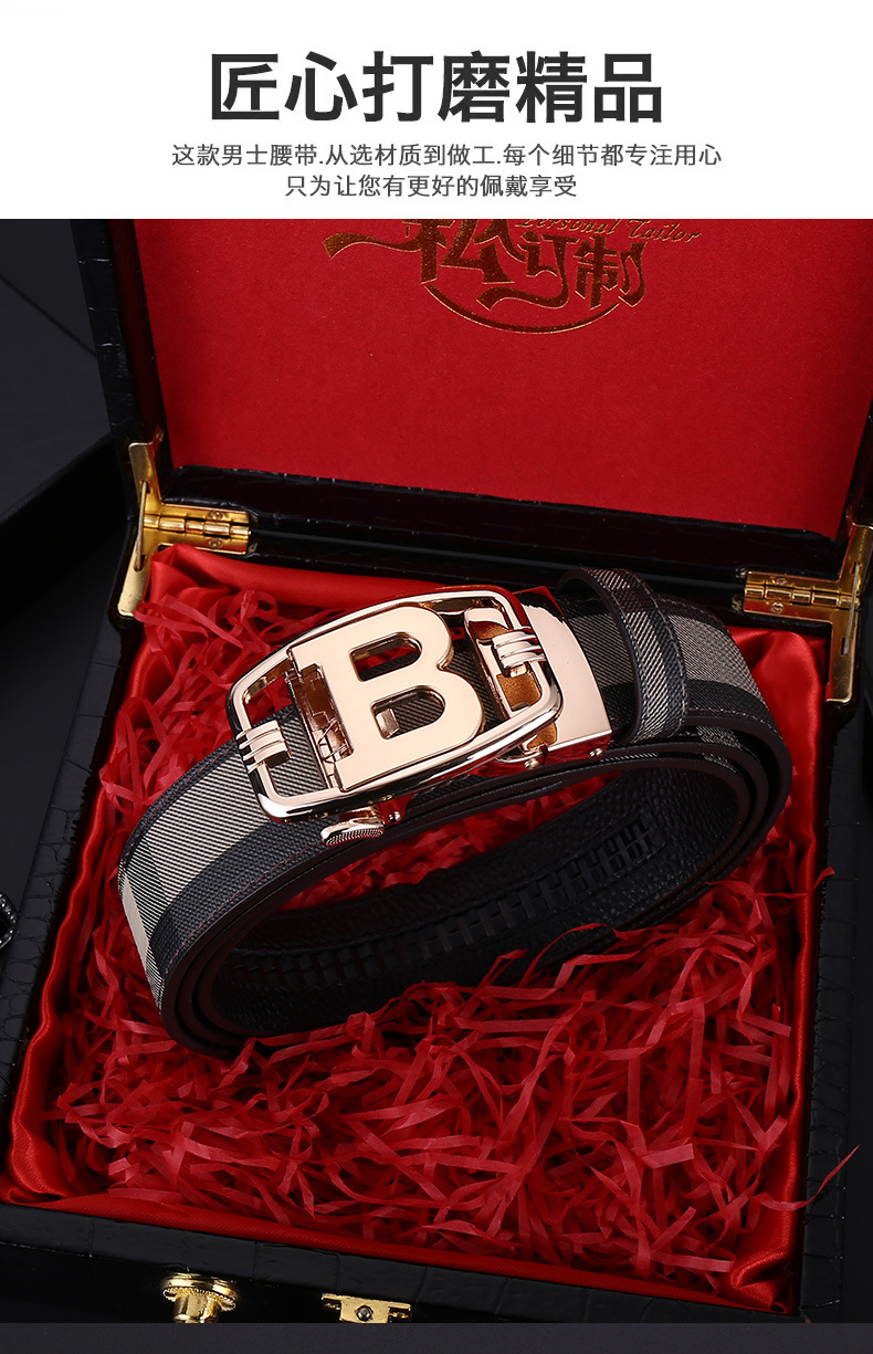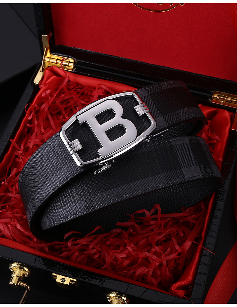 Thắt Lưng Da Thắt Lưng Da Nam Lớp Da Bò Đầu Tiên Khóa Tự Động Công Sở Thời Trang Quần Thắt Lưng Nam Vải Họa Tiết Chữ B Mới