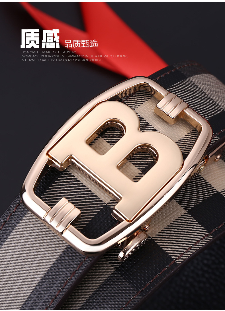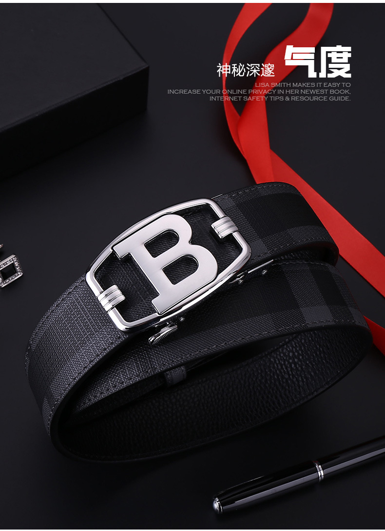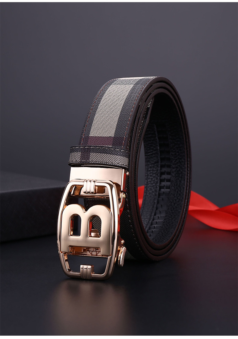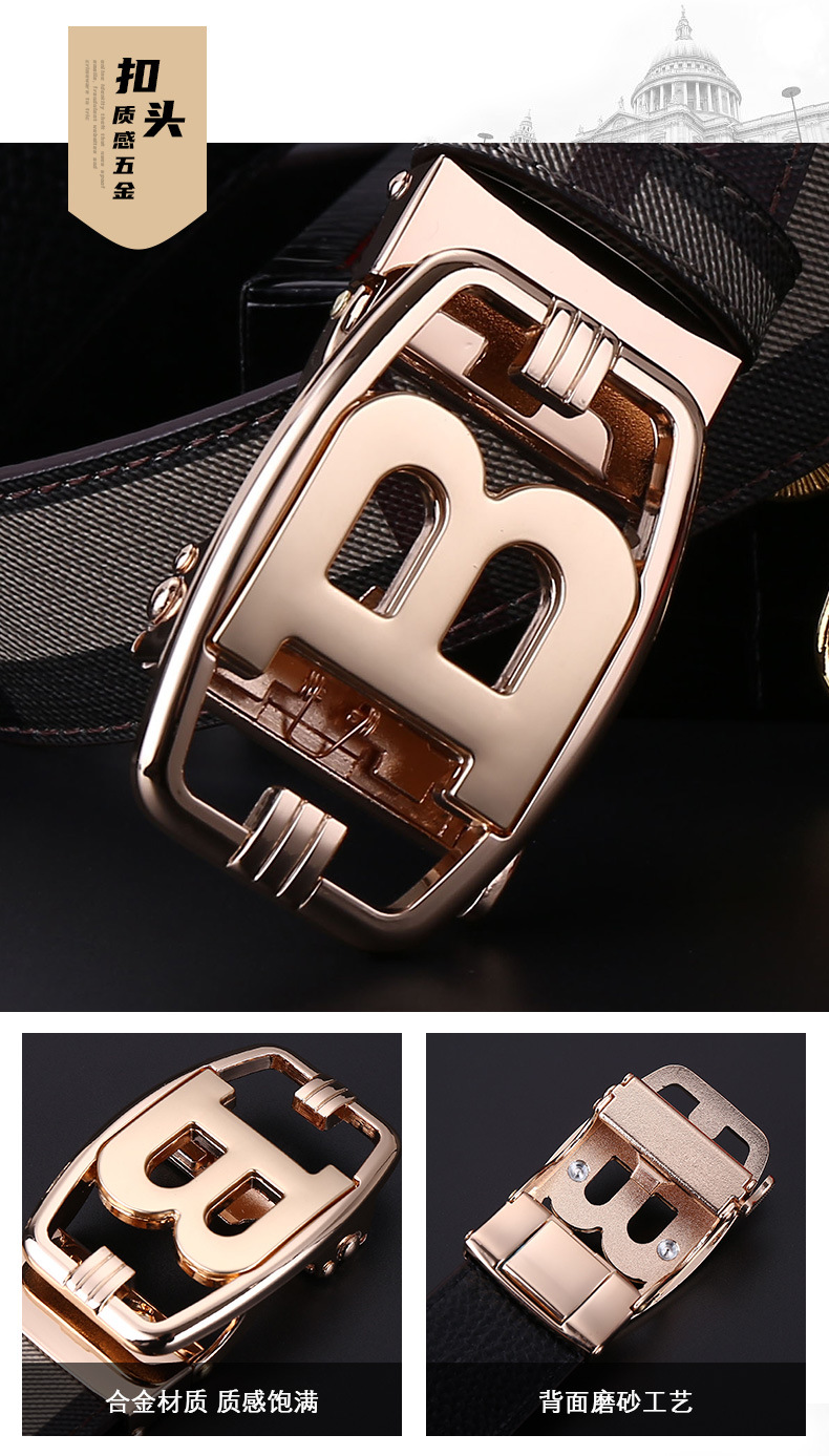 Thắt Lưng Da Thắt Lưng Da Nam Lớp Da Bò Đầu Tiên Khóa Tự Động Công Sở Thời Trang Quần Thắt Lưng Nam Vải Họa Tiết Chữ B Mới