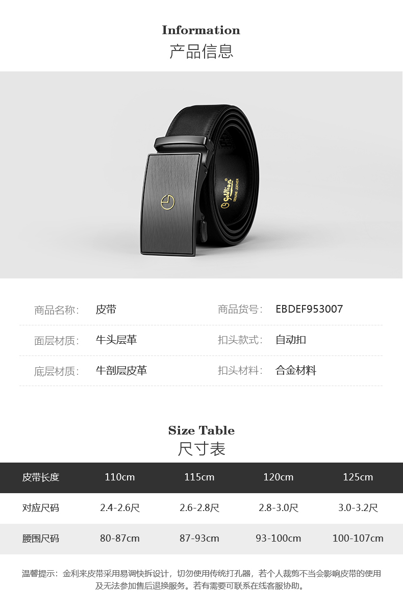 Thắt lưng Goldlion da công sở thắt lưng cao cấp khóa tự động thắt lưng nam da bò lớp đầu sang trọng