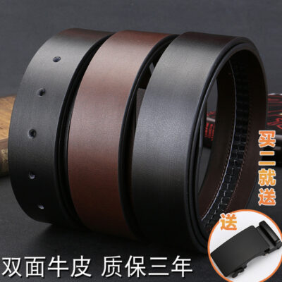 Thắt lưng không đầu không khóa dây thắt lưng nam dải khóa tự động khóa gài 1 lớp da bò nguyên chất không có đầu đai cơ thể