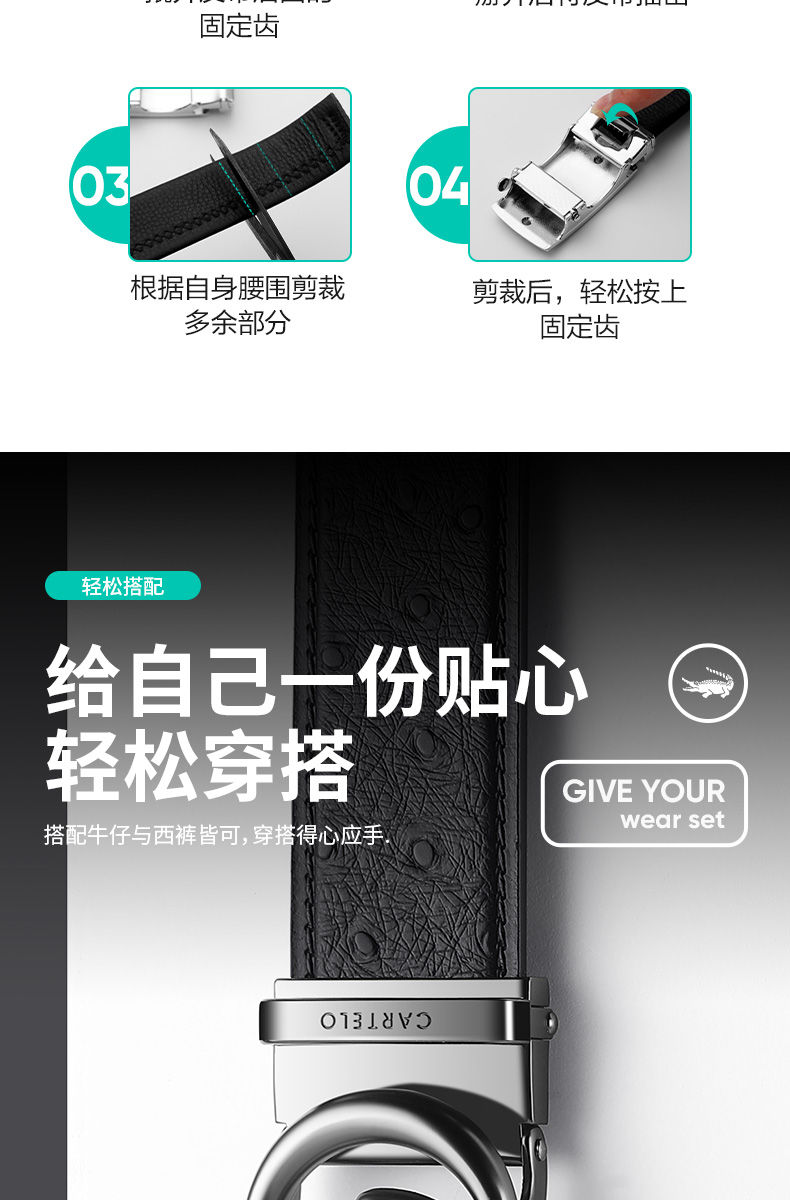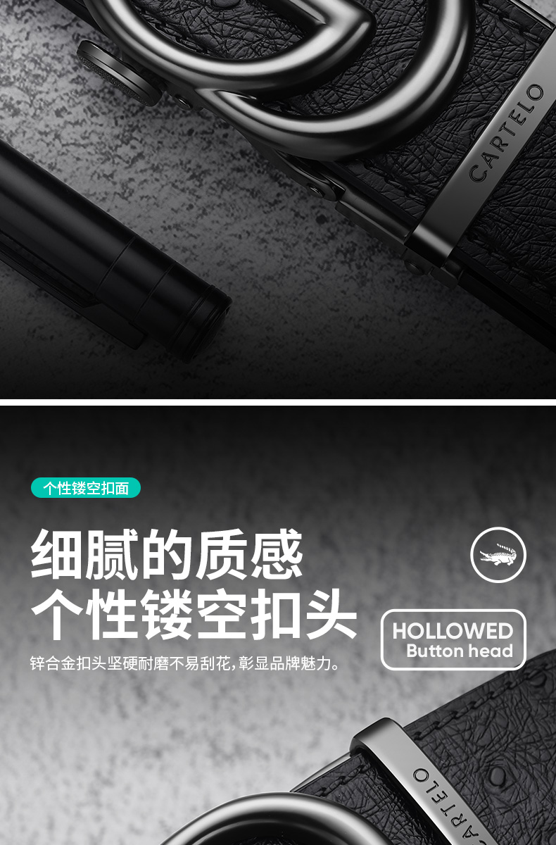 Thắt lưng nam da cá sấu Cardilo sang trọng thương hiệu trẻ khóa tự động khóa quần da bò nguyên chất xu hướng nam