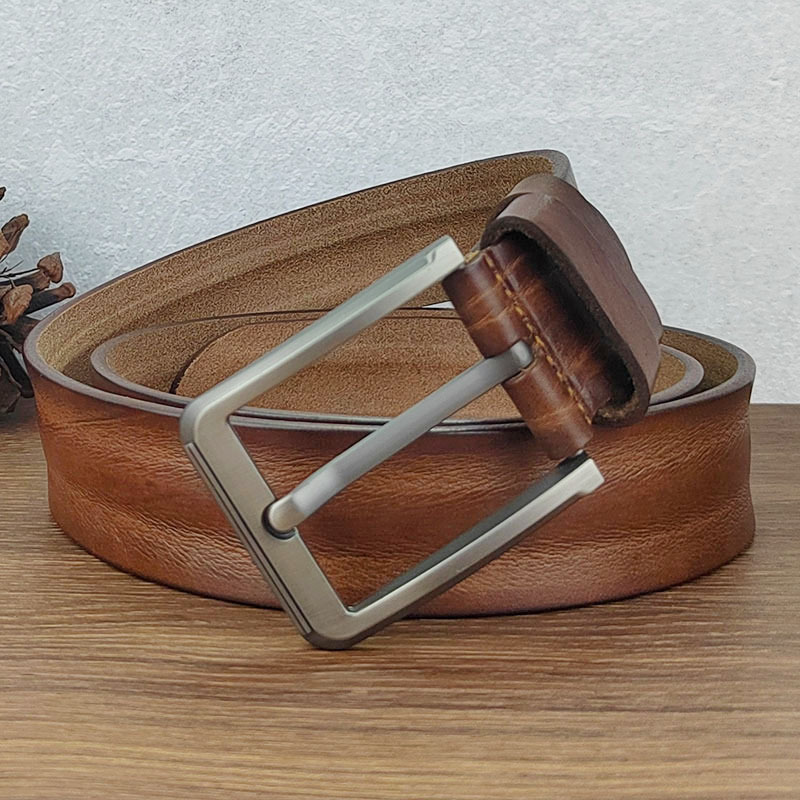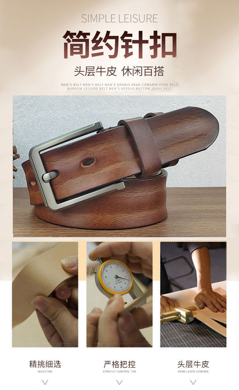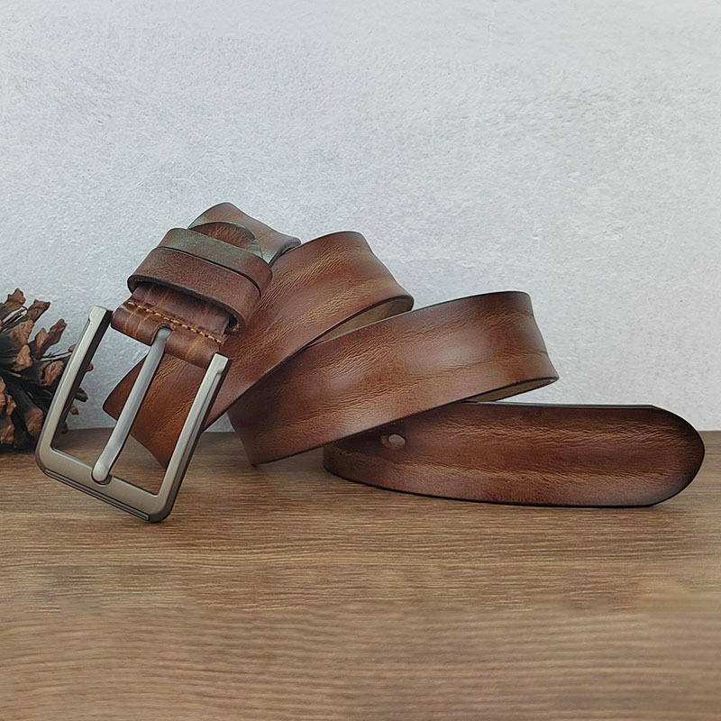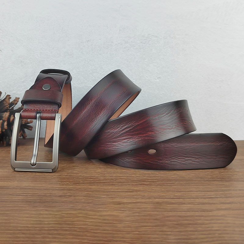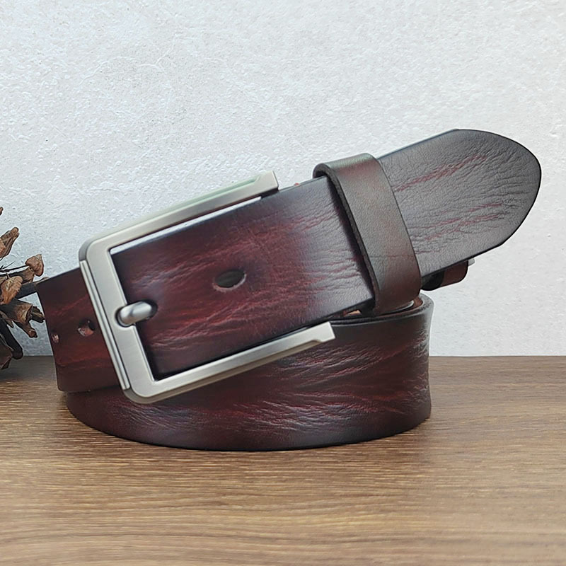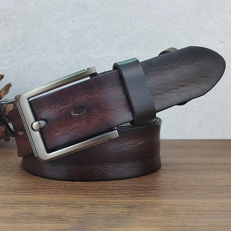 Thắt Lưng Nam Da Khóa Pin Cổ Retro Cũ Thắt Lưng Nam Thanh Niên Lớp Đầu Tiên Da Bò Quần Jean Thắt Lưng Handmade Thời Trang