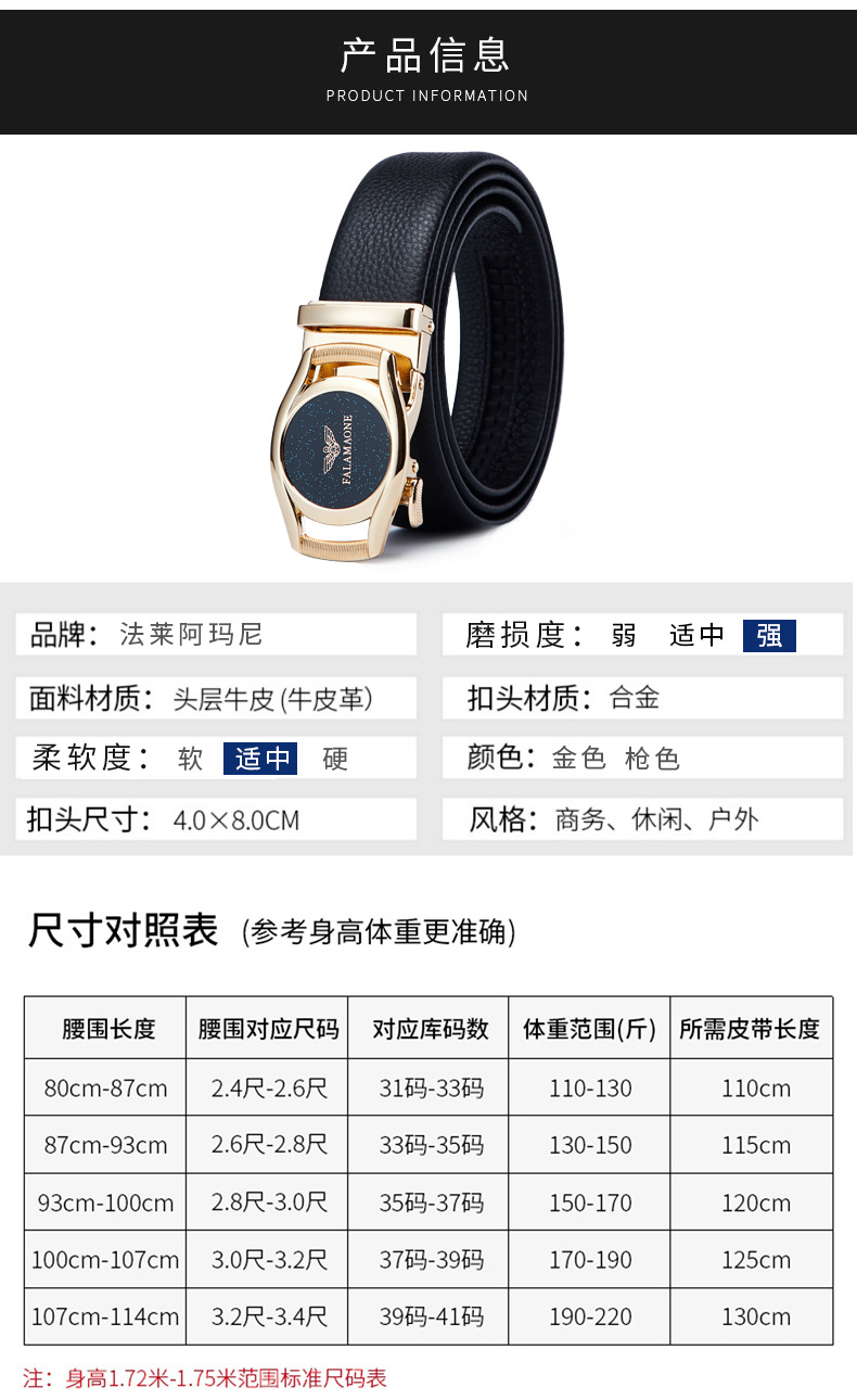 Thắt lưng nam Fale Armani dây khóa tự động cho bạn trẻ Quần da bò nguyên tấm cao cấp kèm thắt lưng cho nam