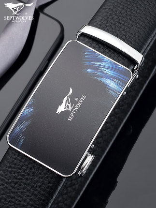 Thắt lưng nam Septwolves thắt lưng da nam triều 2021 mới trẻ trung khóa tự động thắt lưng da bò nguyên chất cao cấp công sở