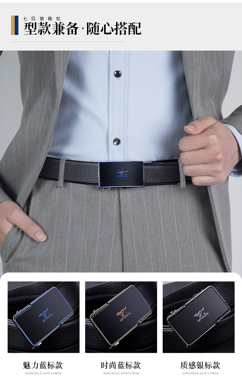 Thắt lưng nam Septwolves xu hướng thời trang da trẻ cao cấp kinh doanh cao cấp tự động khóa thắt lưng quần âu thắt lưng nam