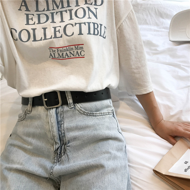 Thắt lưng quần đen nữ thắt lưng retro thắt lưng nữ thắt lưng trong gió nam trang trí pin khóa quần nam thắt lưng hợp thời trang giới trẻ