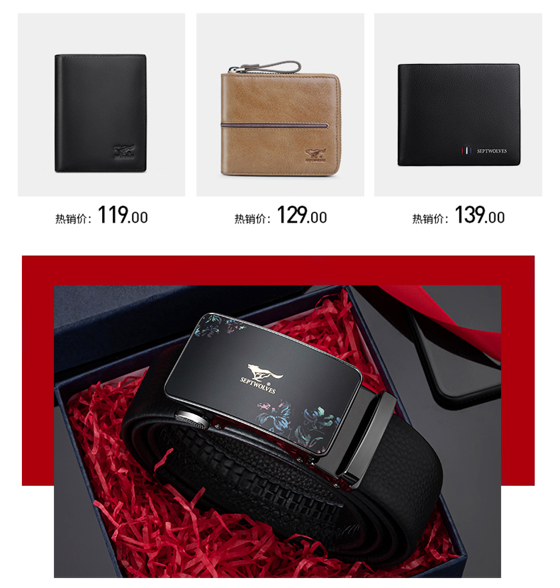 Thắt lưng Septwolves nam da thật chính hãng 2021 mới cao cấp mới cao cấp sang trọng khóa tự động da bò nguyên chất thắt lưng nam