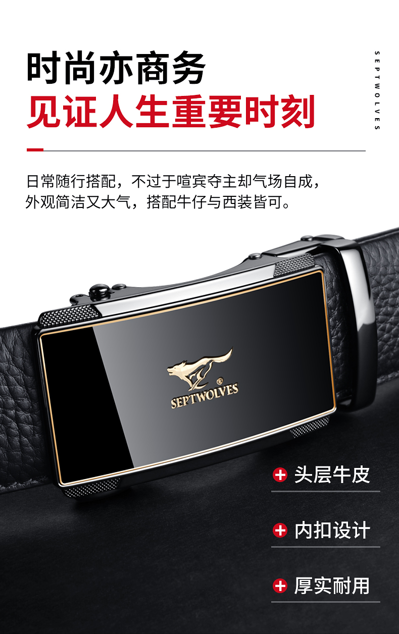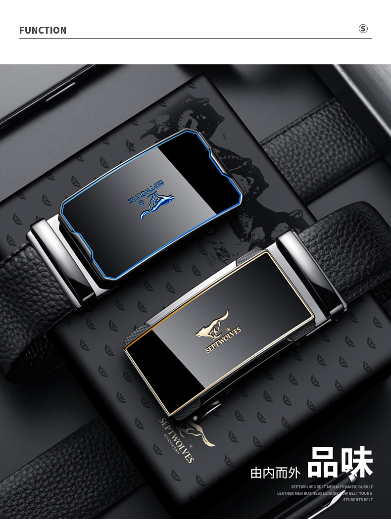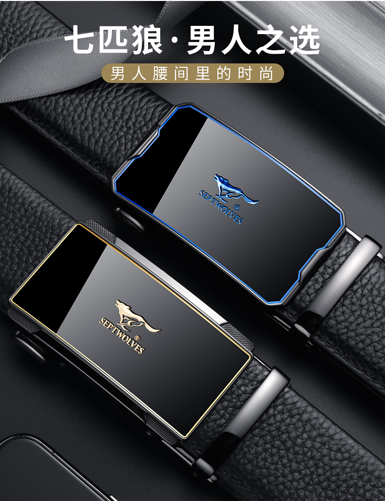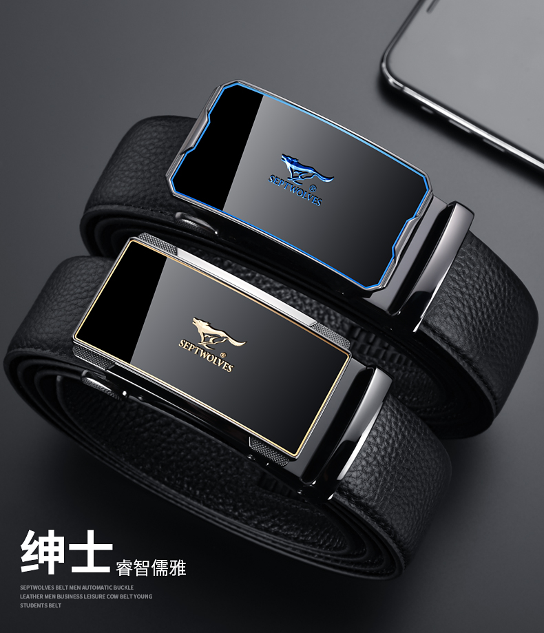 Thắt lưng Septwolves thắt lưng nam da tự động khóa 2022 mới chính hãng lớp đầu tiên nguyên chất da bò nguyên chất thắt lưng nam kinh doanh