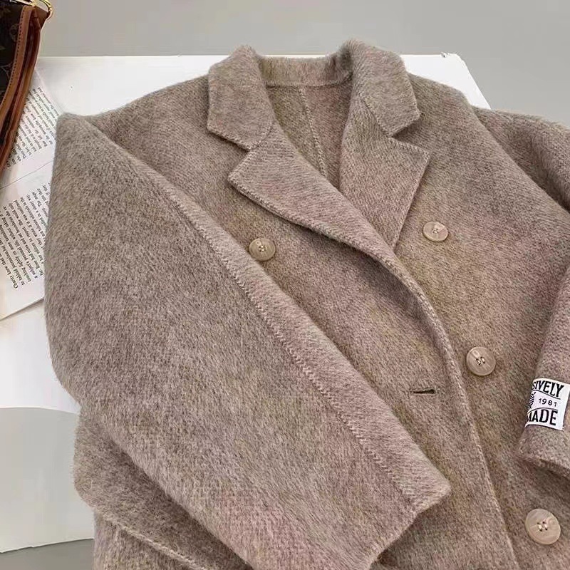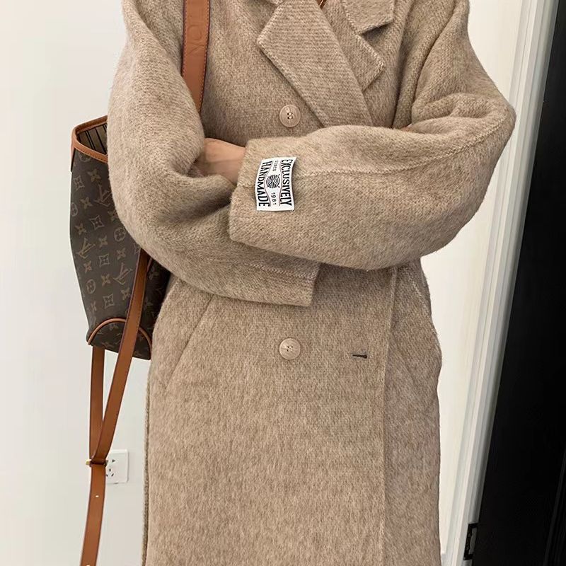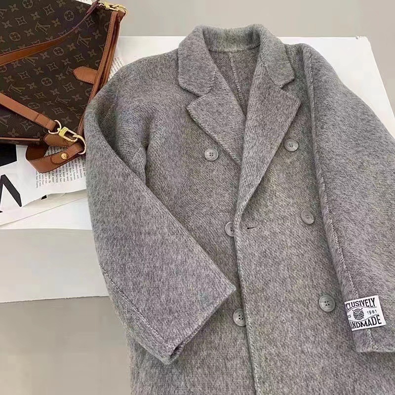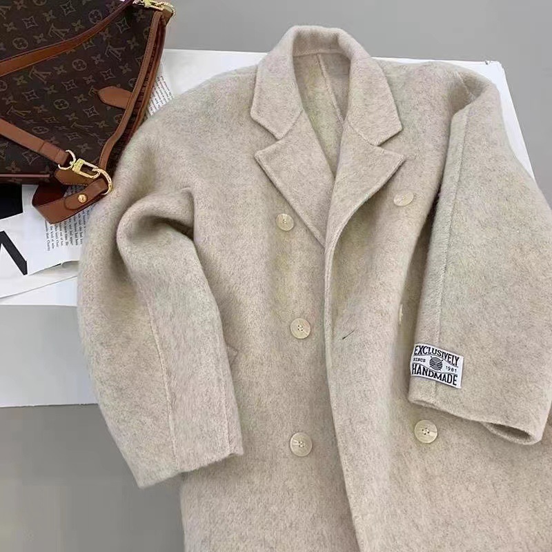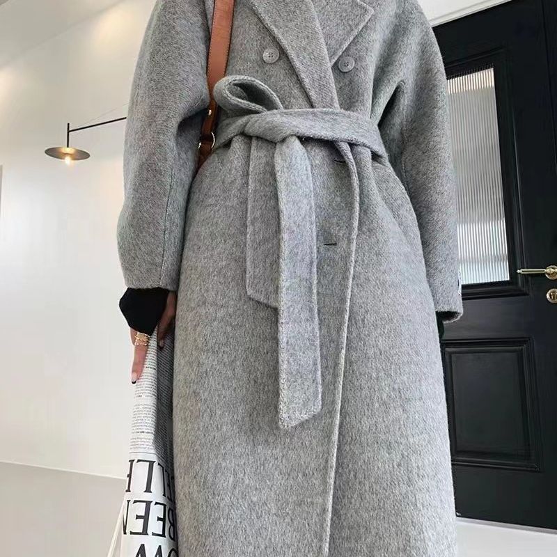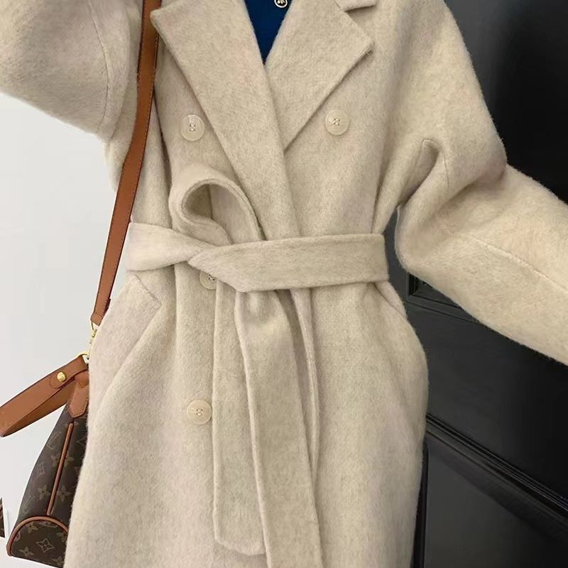 Thắt lưng tóc dài cao cấp phiên bản Hàn Quốc khí chất mới thanh lịch áo khoác len hai mặt dài trung bình cho nữ áo khoác nữ cao cấp