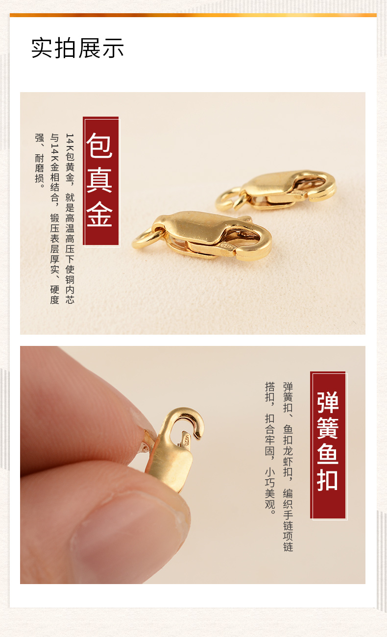 Thẻ Jane 14K Gói Tôm hùm vàng Khóa cá Vòng cổ Vòng đeo tay Khóa khớp DIY Trang sức Khóa Vật liệu Phụ kiện
