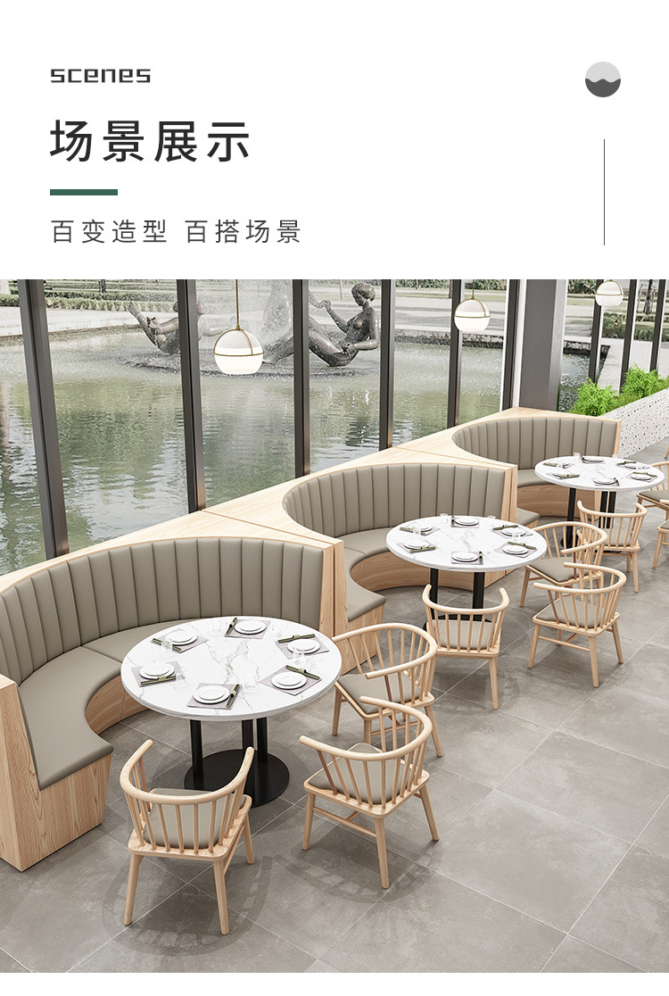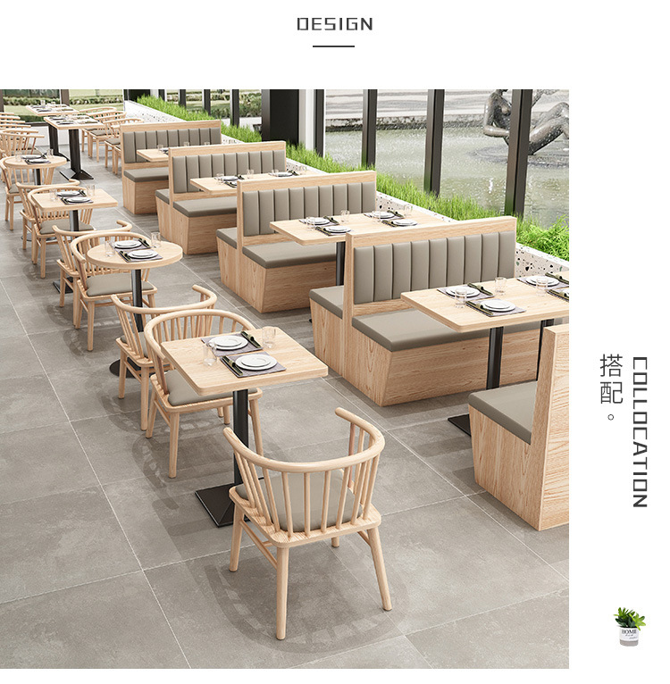 Thẻ nhà hàng ghế sô pha quán cà phê quán trà sữa hamburger tráng miệng quán lẩu dựa vào tường kết hợp bàn ăn gỗ cứng kết hợp ghế