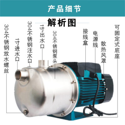 Thép không gỉ 304 máy bơm tăng áp hộ gia đình máy bơm nước máy bơm nước chịu axit và chống ăn mòn Máy bơm ly tâm tự mồi 220V