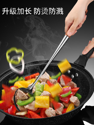 Thép không gỉ 304 muỗng chiên xào xẻng nồi xẻng chiên xẻng cán dài muỗng xúp đồ dùng nhà bếp gia dụng cho đầu bếp