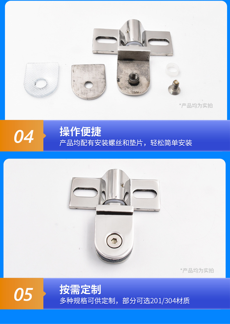 Thép Không Gỉ 304 Tắm Phòng Tắm Cửa Kính Phụ Kiện Nhỏ Hình Bán Nguyệt Cửa Kính Trục Tắm Kẹp