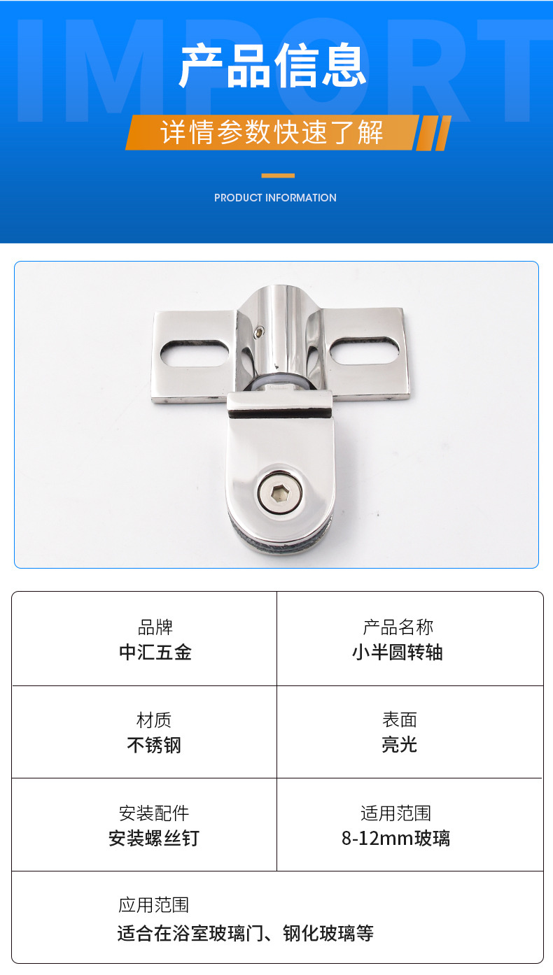 Mục số: Trục hình bán nguyệt nhỏ Thương hiệu: Zhonghui Phần cứng Chất liệu: Thép không gỉ Kiểu dáng: Trục hình bán nguyệt nhỏ Xử lý bề mặt: sáng Thông số kỹ thuật: 304# dày/304# mỏng/304# mỏng Tùy chỉnh gia công: Có hoặc không Xuyên biên giới xuất khẩu độc quyền nguồn cung cấp: Không Phong cách: Hiện đại Đơn giản Loại: Bản lề chịu lực